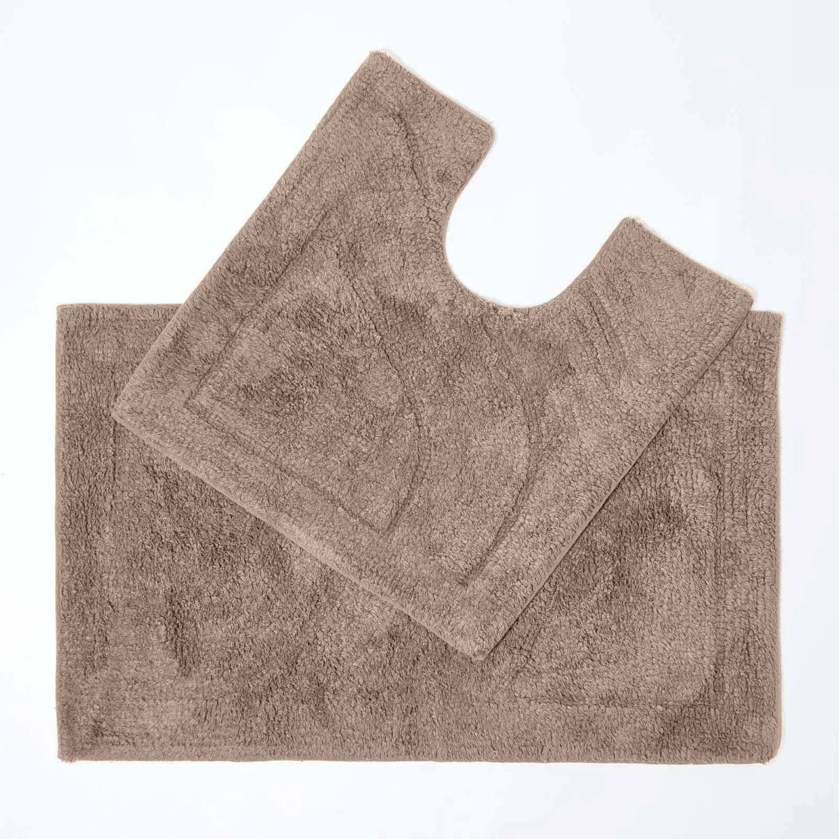2 Teiliges Luxus Badematten Set 100% Baumwolle Beige