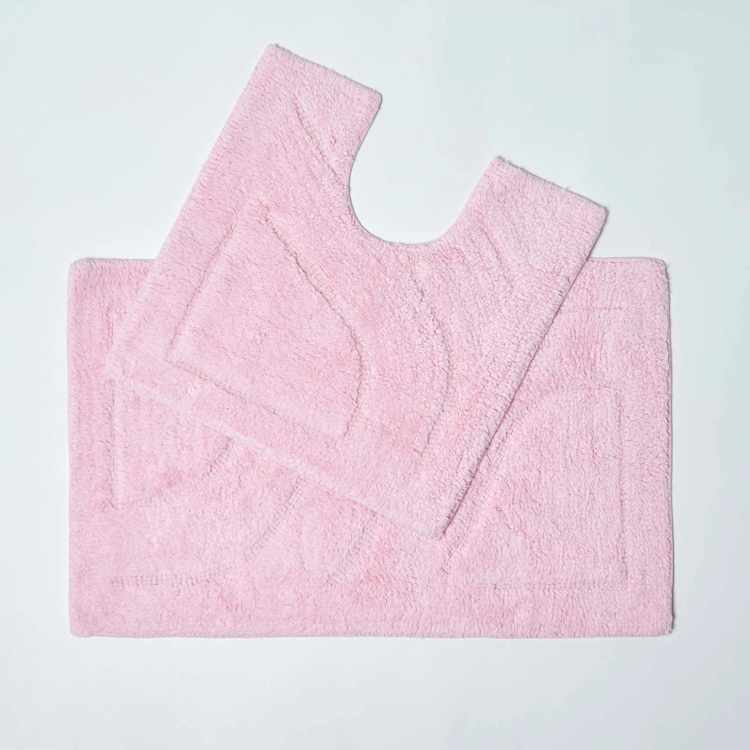 2 Teiliges Luxus Badematten Set 100% Baumwolle Rosa