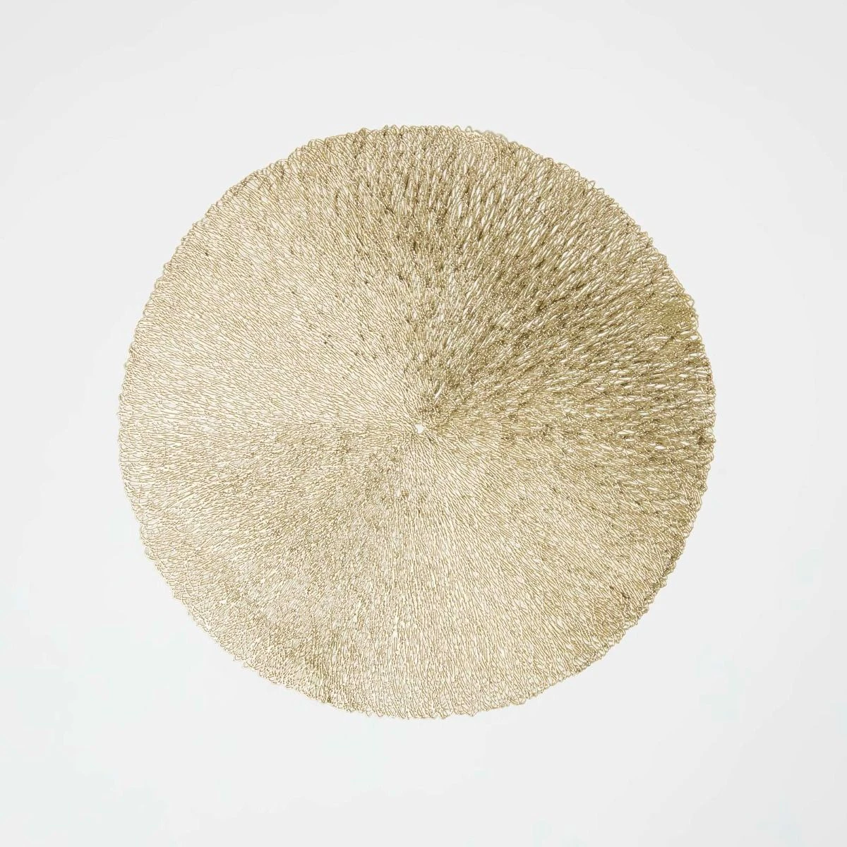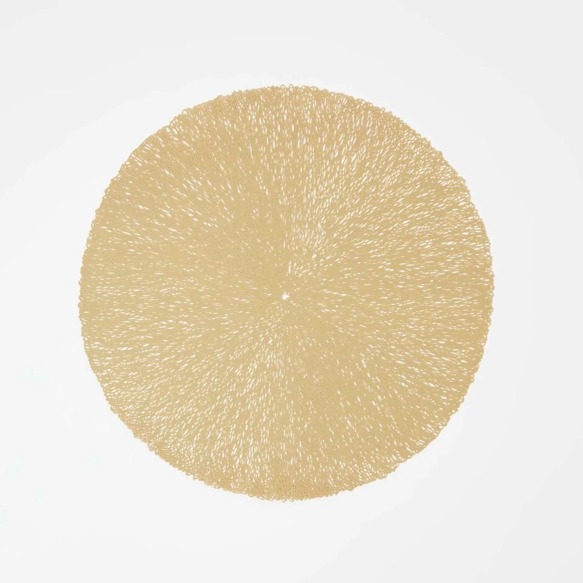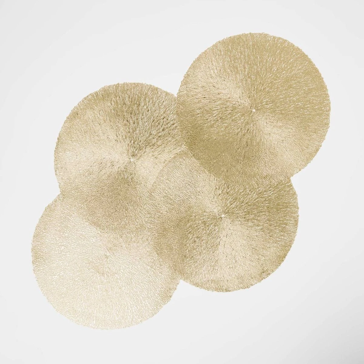 4 dekorative runde Platzmatten in Gold. Die abwaschbaren Tischset haben einen Durchmesser von ca. 38 cm und sind eine attraktive und praktische Ergänzung für jeden Esstisch.