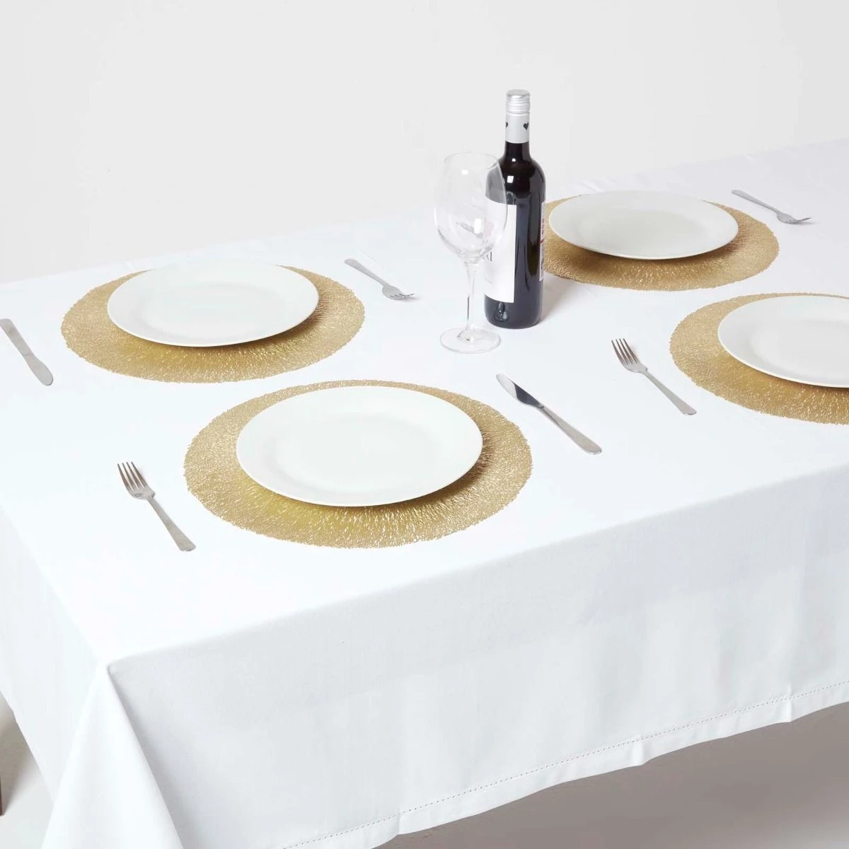 Homescapes’ goldene Platzmatten können einfach feucht abgewischt werden. Entdecken Sie in unserem umfangreichen Sortiment auch schöne Tischwäsche für jeden Stil von schlicht bis farbenfroh.