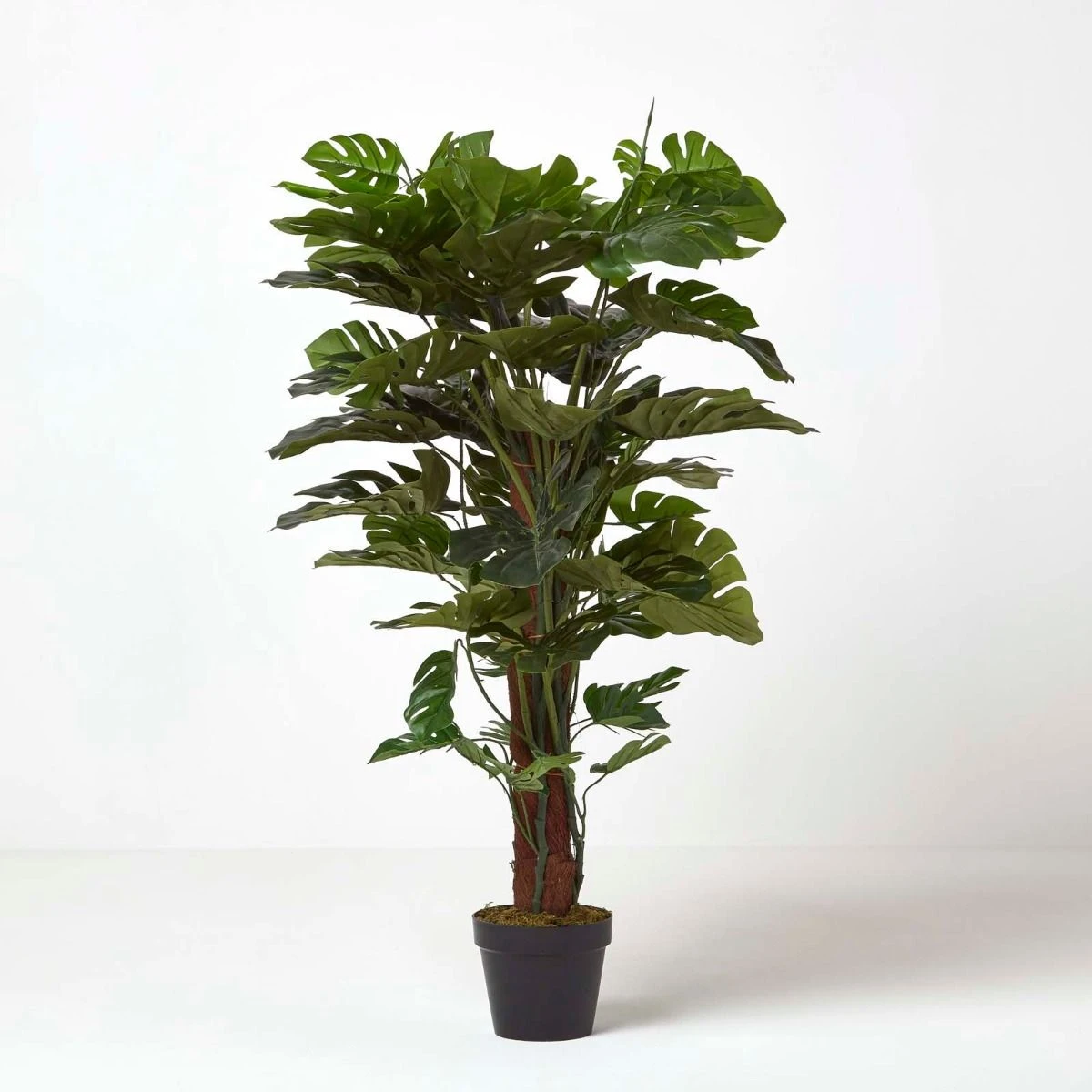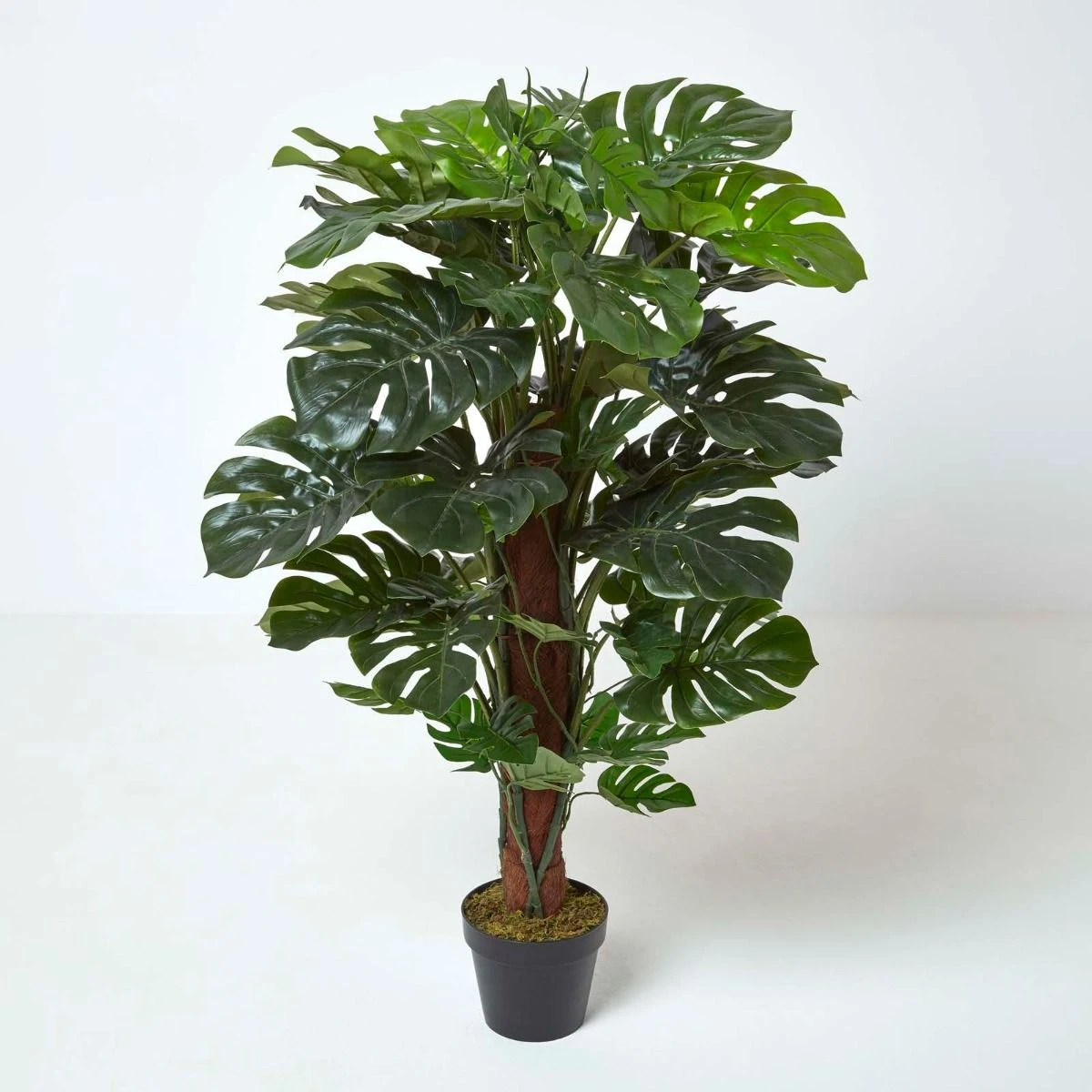 Decorative artificial monstera plant, with large green leaves, this instantly recognisable artificial plant is potted in a black pot and available in 2 sizes.