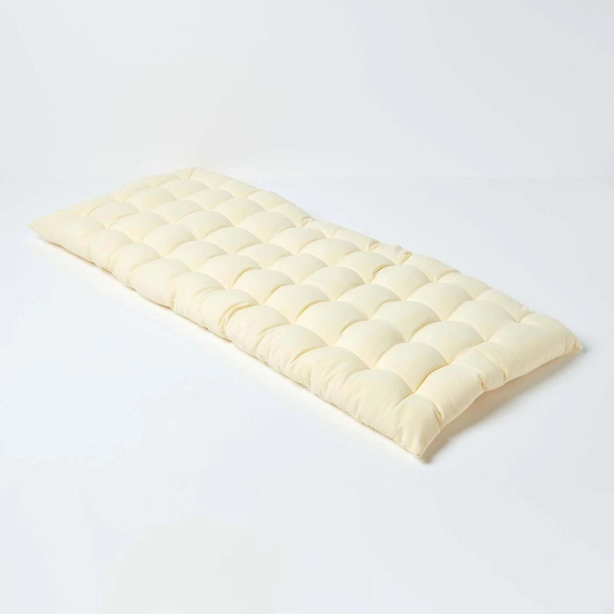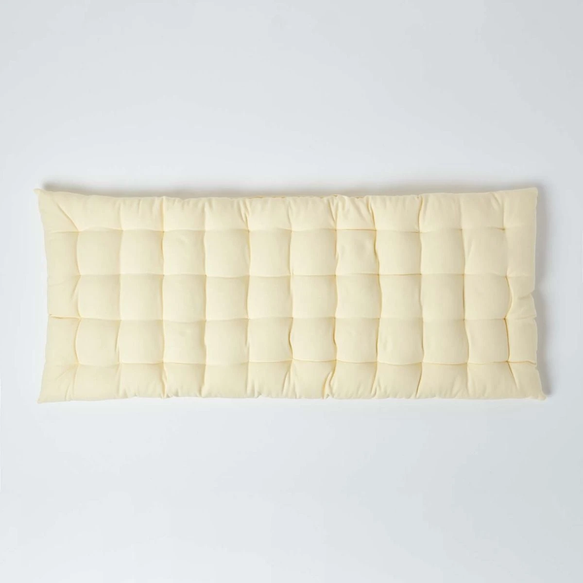 Verwandeln Sie Ihre einfache Gartenbank in eine moderne angenehme Sitz- oder Liegengelegenheit und machen Sie Ihren Garten oder Terrasse richtig bequem. Unsere klassische weiße Bankkissen werden jeden Einrichtungsstil ergänzen und Sie können es mit passenden Tischtüchern und Stuhlkissen kombinieren.