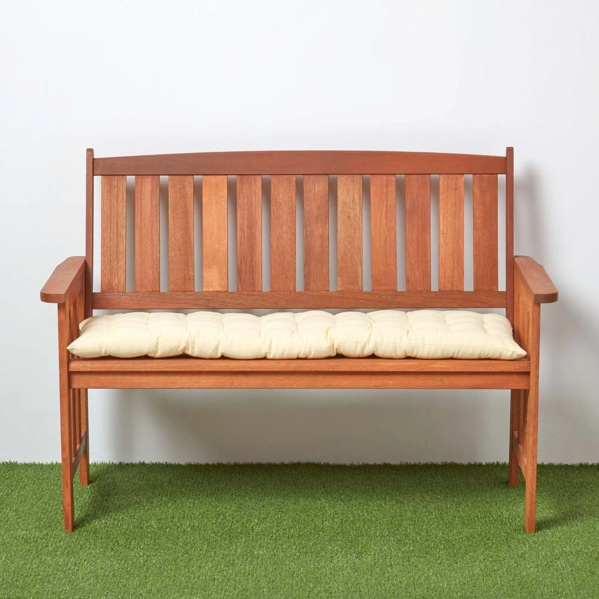 Bequeme cremefarbige Bankauflage von Homescapes Gartenaccessoires Kollektion. Die hochwertige Polsterauflage passt ideal zu 2er und 3er Bänke und ist im 9 Farben erhältlich.
