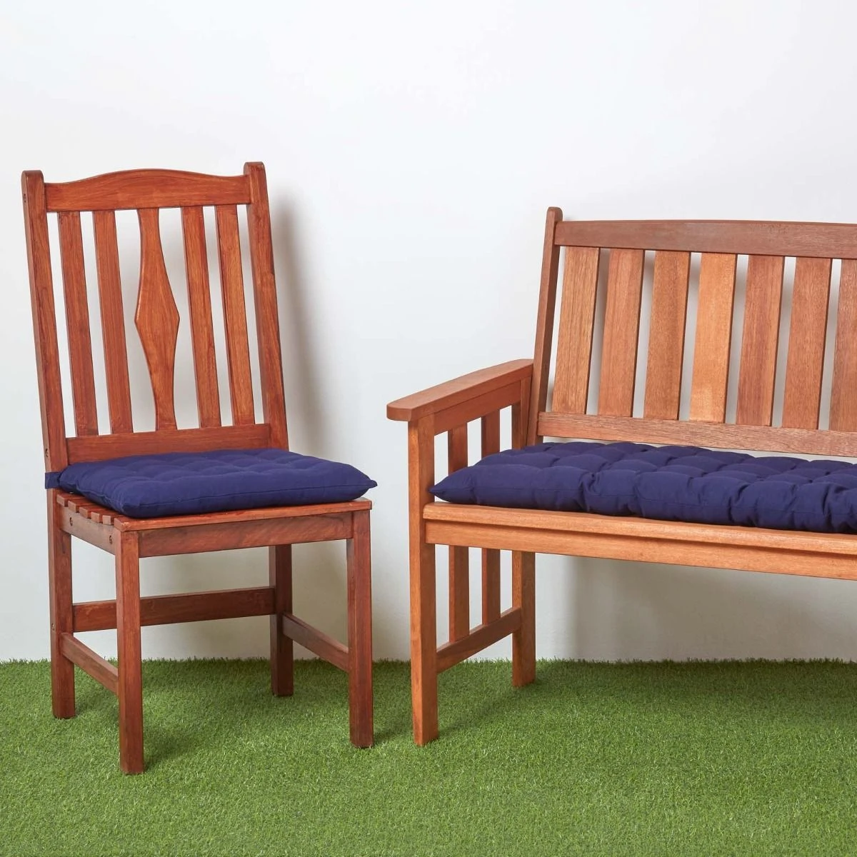 Hochwertige dunkelblaue Gartenbank-Auflage für Holzbänke und Gartenschaukeln ideal für Lounge- und Gartenmöbel. Die Bankauflage ist aus 100% Baumwolle gewebt und ist extra weich.