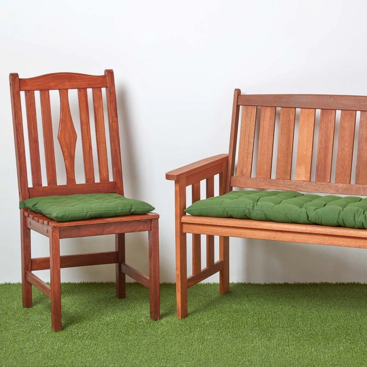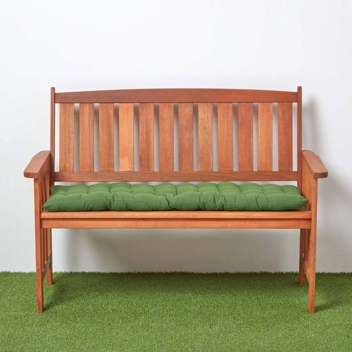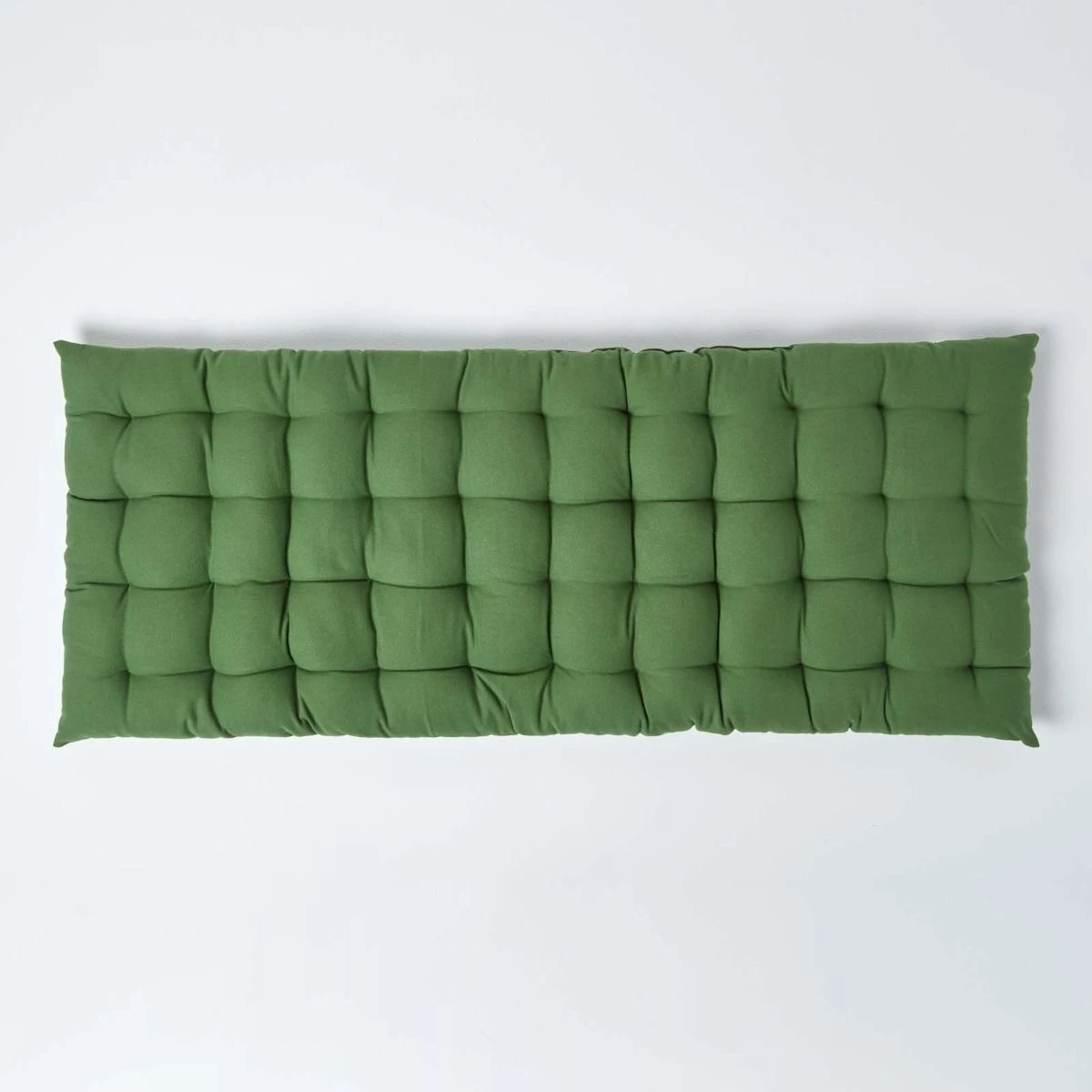 Hochwertige dunkelgrüne Polsterauflage für Holzbänke und Gartenbänke. Gewebt aus 100% reiner Baumwolle und erhältlich in zwei Größen und neun Farben exklusiv bei Homescapes.