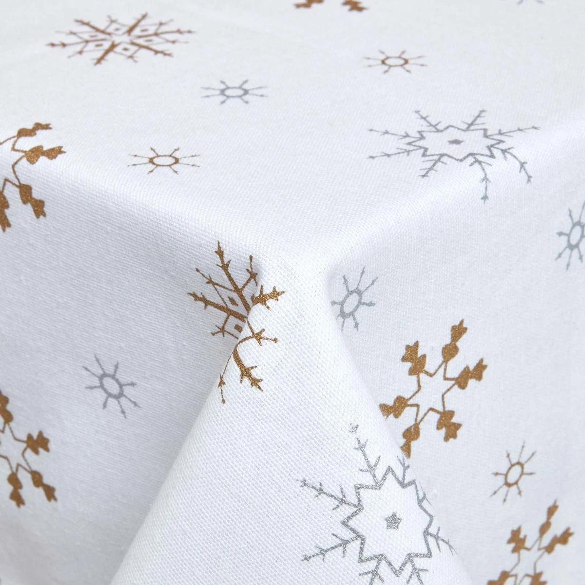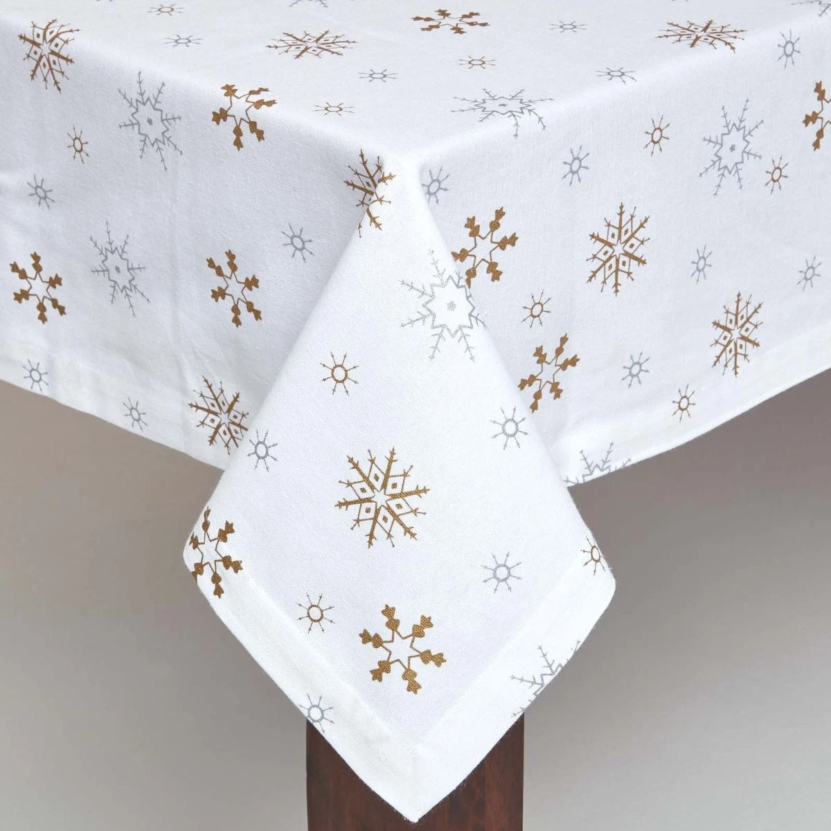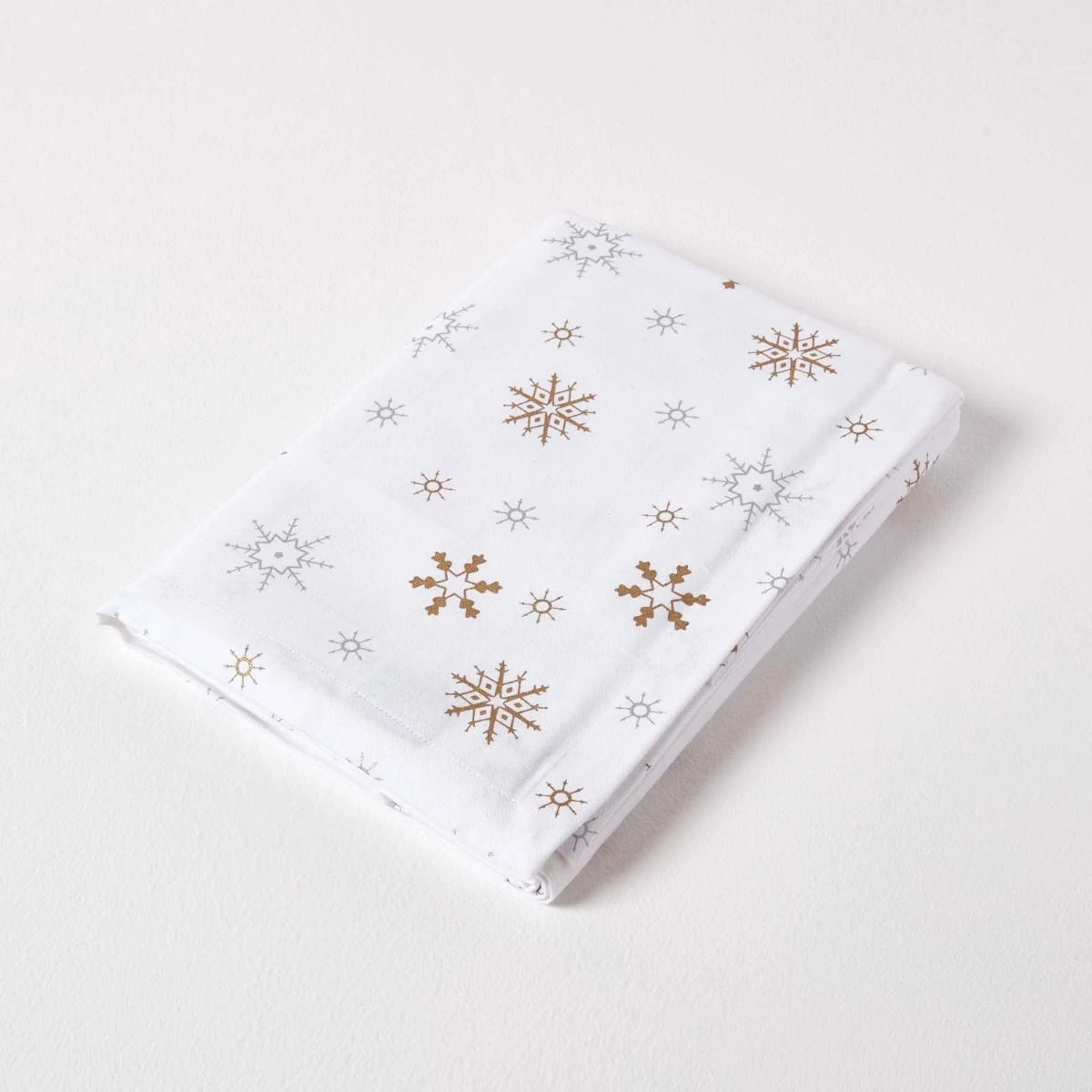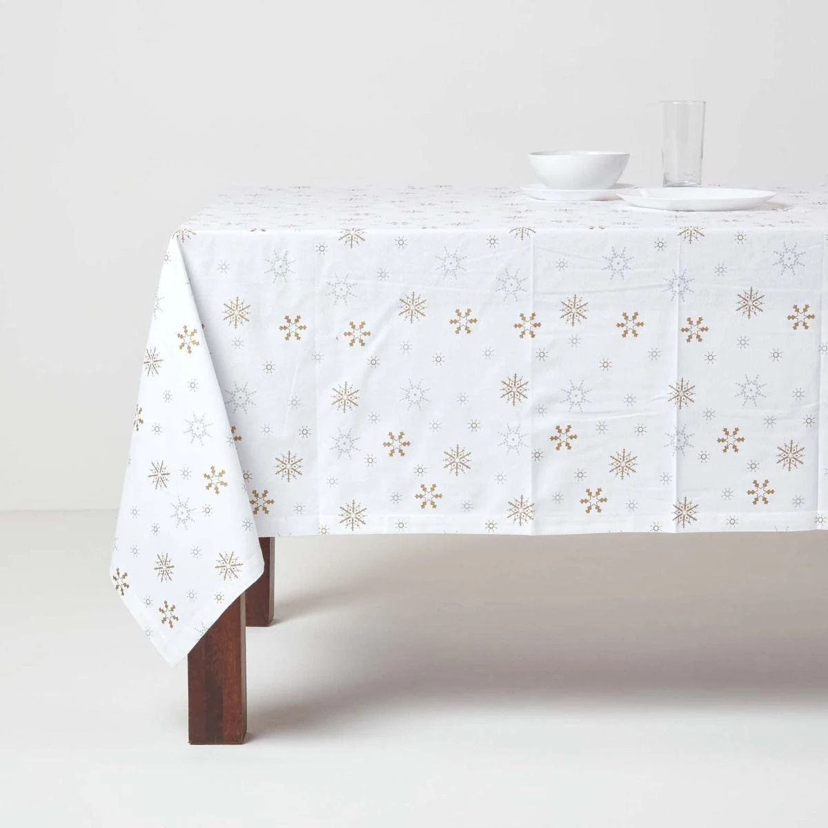 Sorgen Sie mit Homescapes weißer Schneeflocken-Tischdecke für eine festliche Atmosphäre.