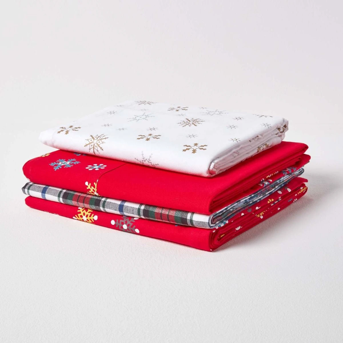 Auch weitere passende Deko-Artikel in dem Schneeflocken-Look finden Sie bei Homescapes. Die Baumwoll-Tischdecke gibt es auch unifarben und mit weiteren Mustern fürs ganze Jahr.