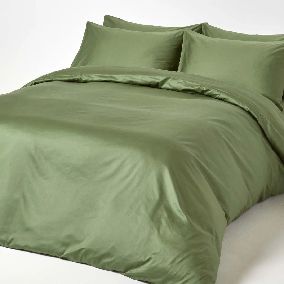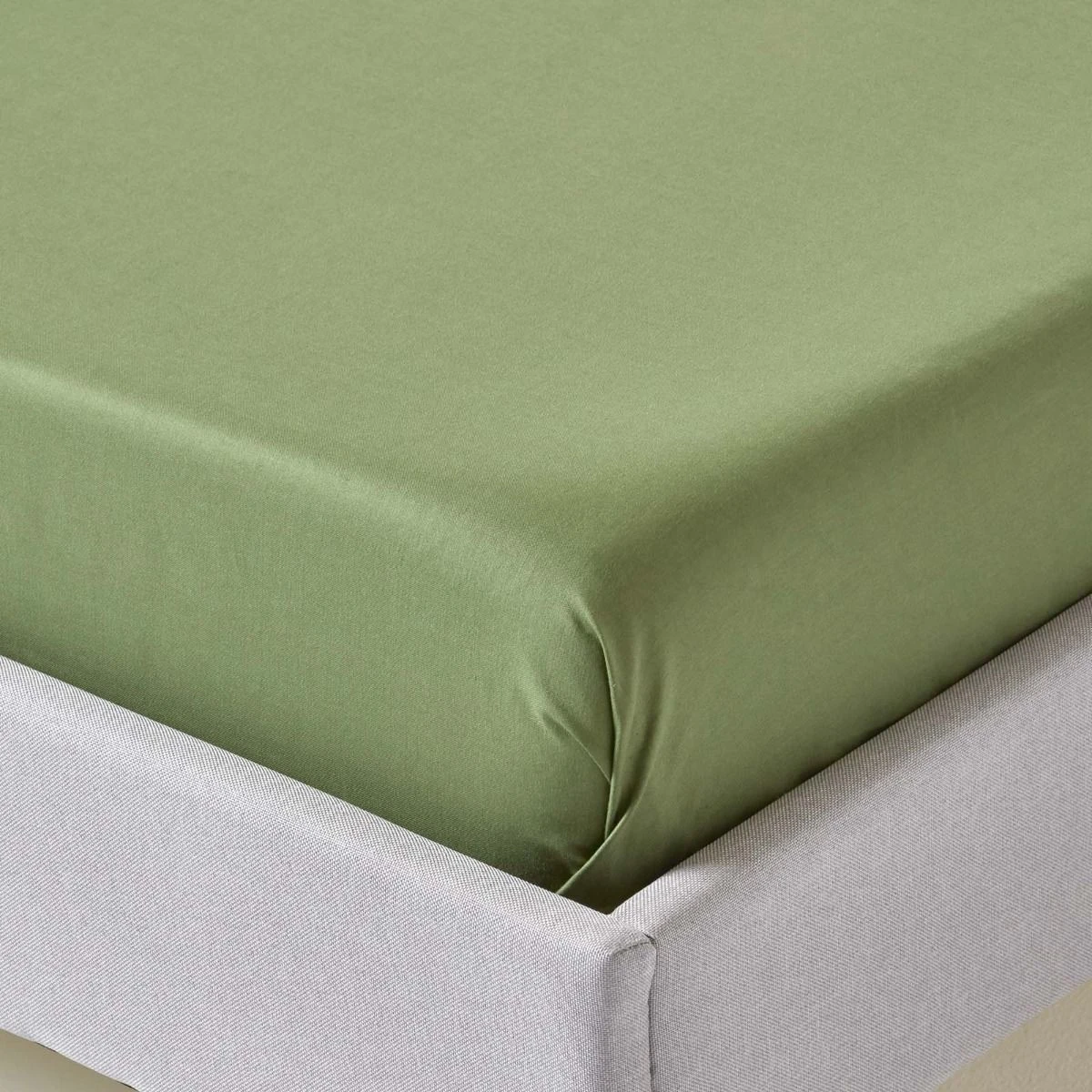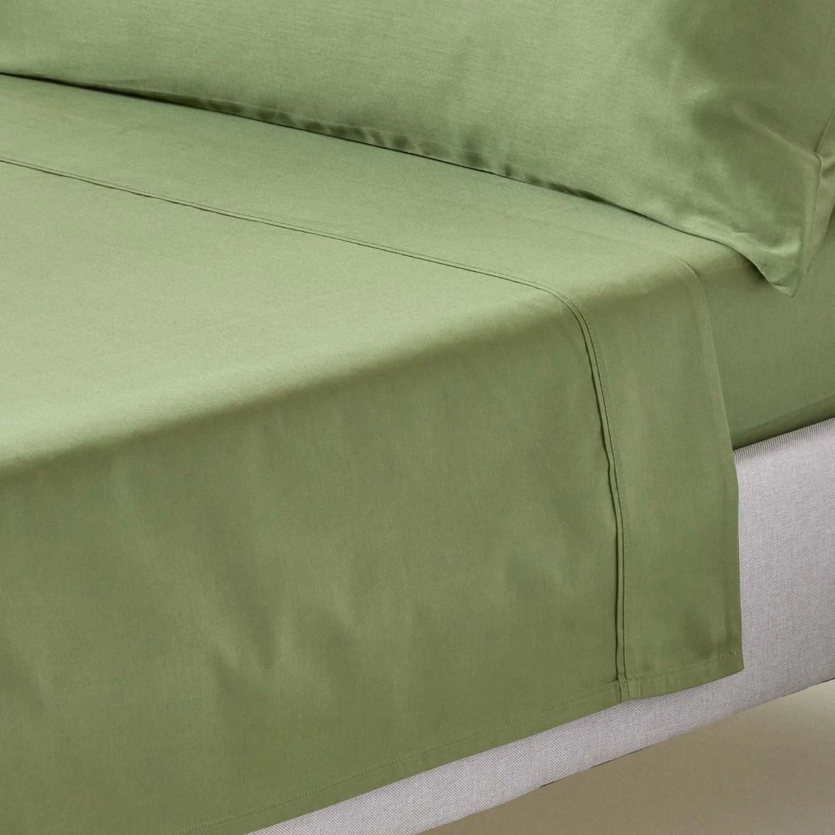 Luxuriös weiche und hautverwöhnende moosgrüne Bettlaken ohne Gummizug aus reiner Bio-Baumwolle – atmungsaktiv, temperaturregulierend und in vielen Größen erhältlich – für erholsamen Schlaf zu jeder Jahreszeit.