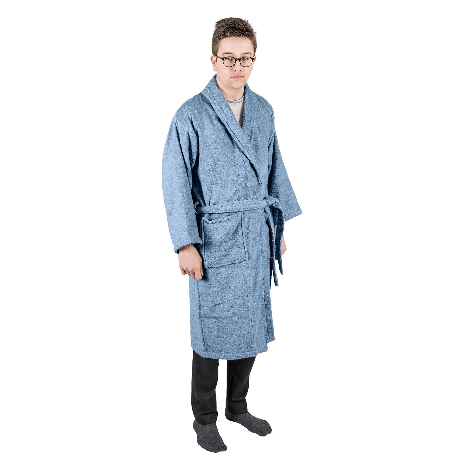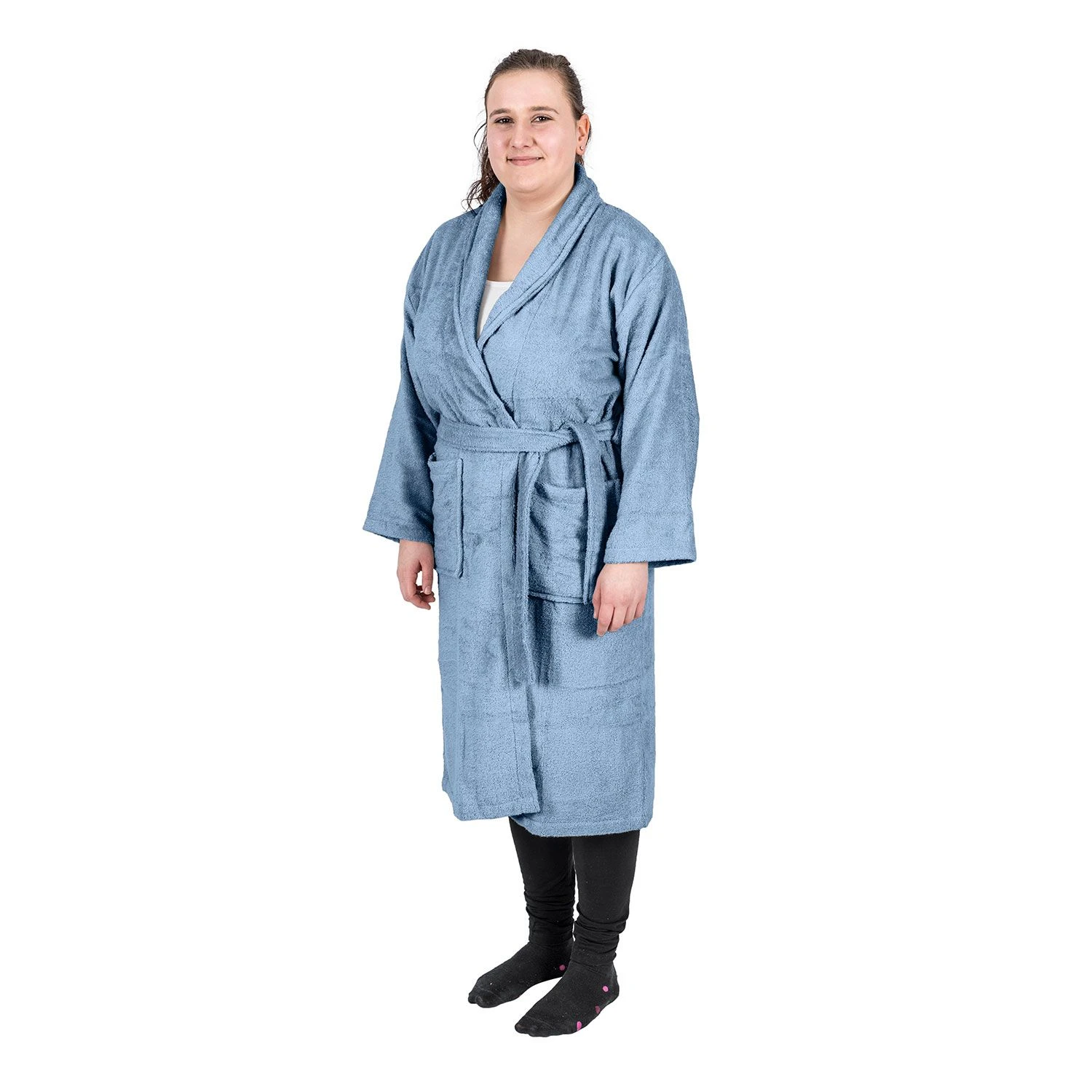 Luxuriöser Bademantel von Homescapes für alltäglichen Gebrauch mit Schalkragen und zwei Taschen in Blau aus hochwertigem, hautfreundlichem Frotteestoff, Erhältlich in drei verschiedenen Größen