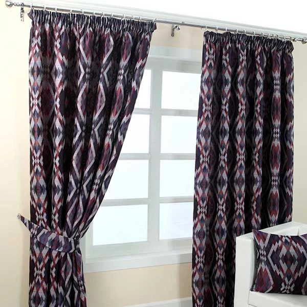 Hochwertige blau rote Kräuselband Vorhänge Rosario Diamond von Homescapes. 9 verschiedene Größen erhältlich. Mit angesagtem Aztekenmuster für moderne Akzente