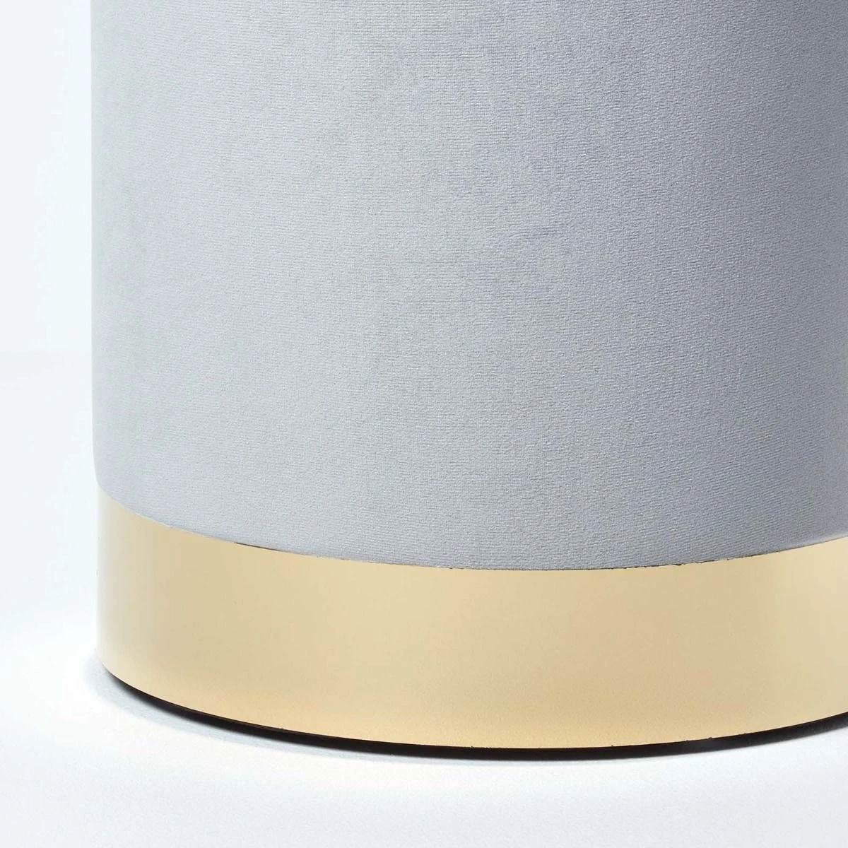 Der runde Schemel mit Aufbewahrungsfach ist mit einem Messingfuß ausgestattet, um zusätzliche Luxus und Glamour zu verleihen. Die neutrale silberne Farbe passt ideal zu modernen, als auch zu vintage Einrichtungen und kann schön mit vielen anderen Farben kombiniert werden. Dieser moderner Sitzpouf ist auch im Orange, Smaragdgrün und Dunkelblau erhältlich.