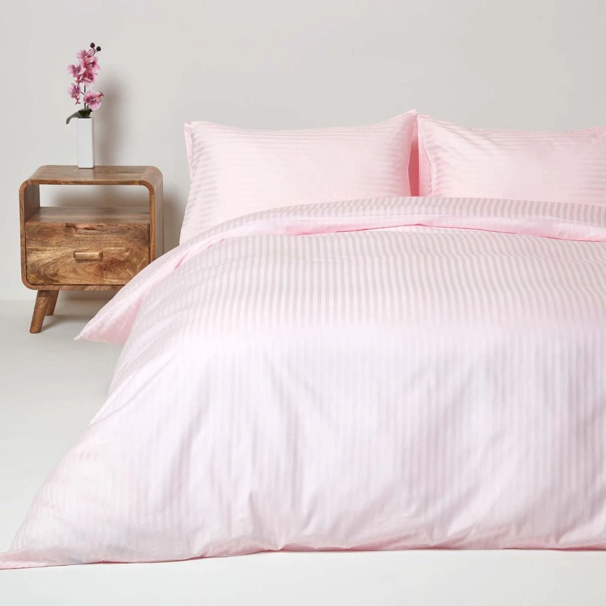 Genießen Sie die weiche und atmungsaktive Qualität feinster ägyptischer Baumwolle und verleihen Sie Ihrem Schlafzimmer mit der attraktiven Satinstreifen-Bettwäsche einen Hauch schlichter und doch luxuriöser Eleganz.