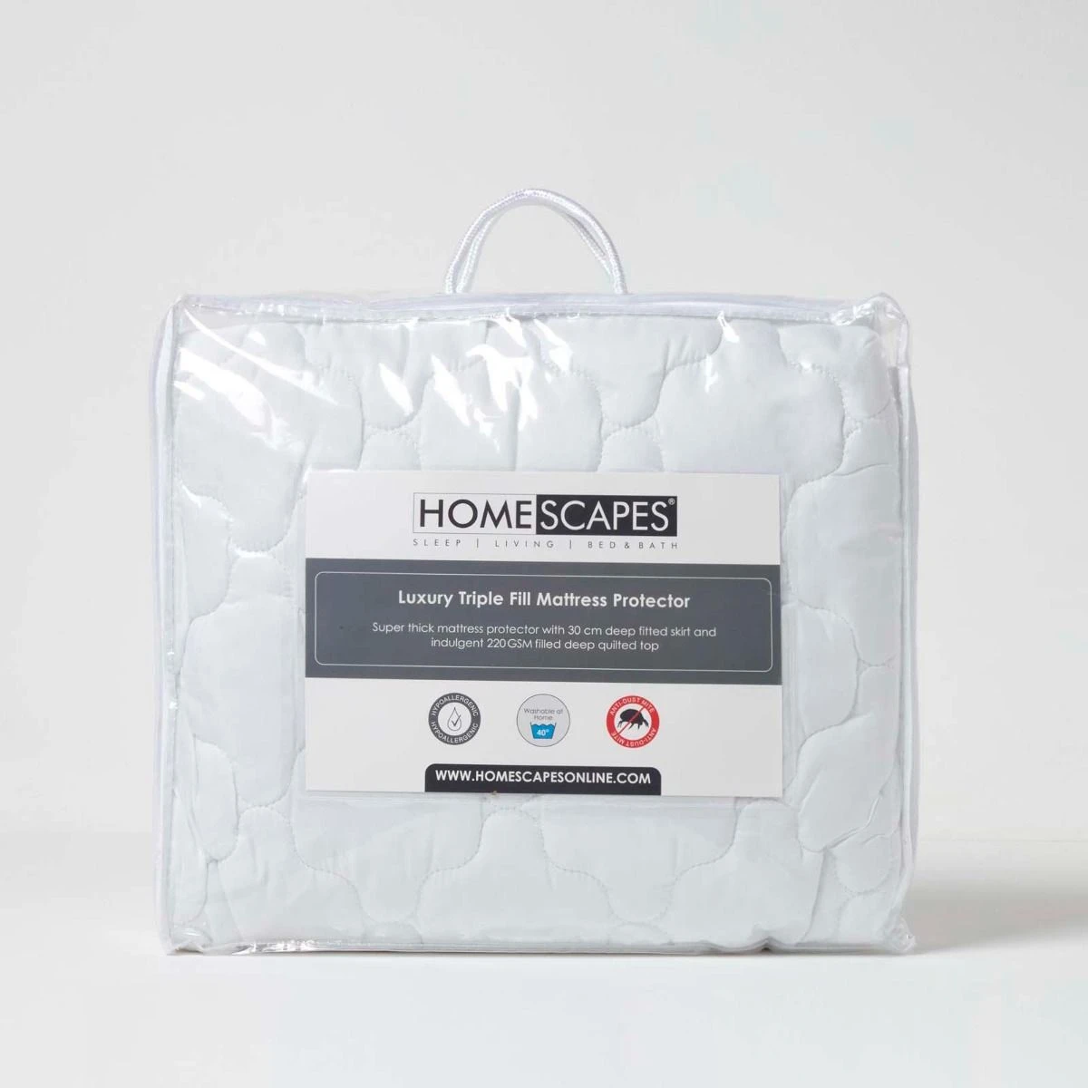Mit dem Premium-Matratzenschoner von Homescapes verwöhnen Sie sich selbst mit luxuriösem Liegekomfort und verlängern gleichzeitig die Lebensdauer Ihrer Matratze. Der Matratzenschutz hat eine Oberseite aus samtig-weichem und äußerst strapazierfähigem Peach-Skin-Stoff, dessen weicher Griff an Pfirsichhaut erinnert. Die dicke und weiche Füllung lässt Sie wie auf Wolken schlafen. Sorgfältig aus hypoallergenen Materialien gefertigt, bietet der Matratzenschoner auch Allergikern unnachahmlichen Schlafkomfort. Der hochwertige Matratzenschutz ist pflegeleicht und kann problemlos bei 40 °C in die Waschmaschine.