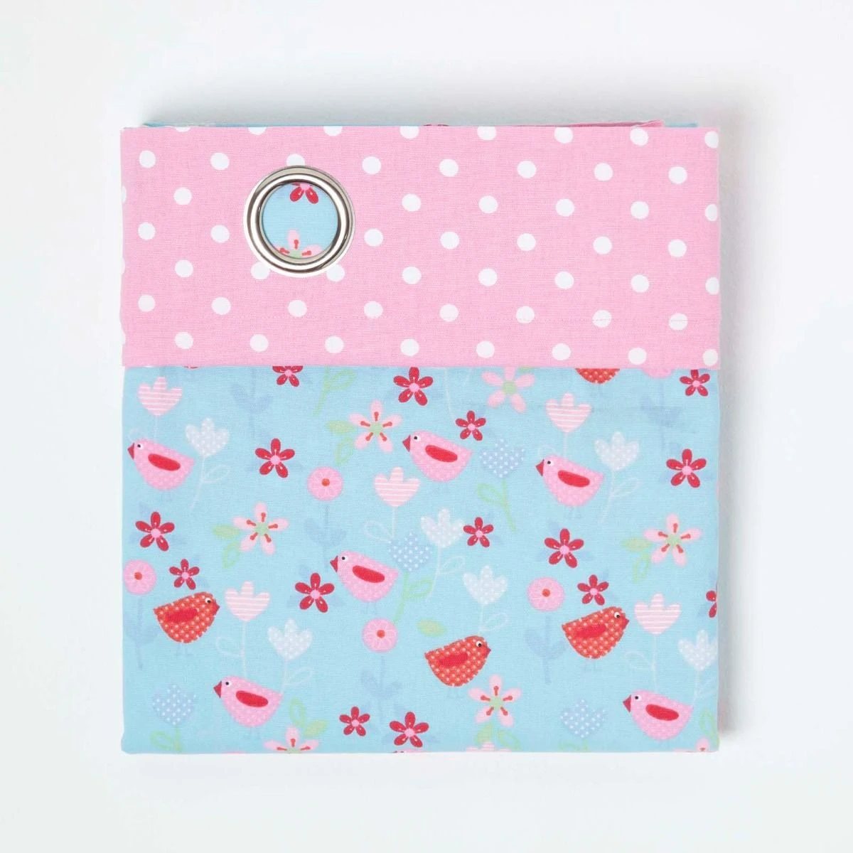 Gardinen Mit Ösen Vögel & Blumen Rot Blau Im 2er Set 100% Baumwolle