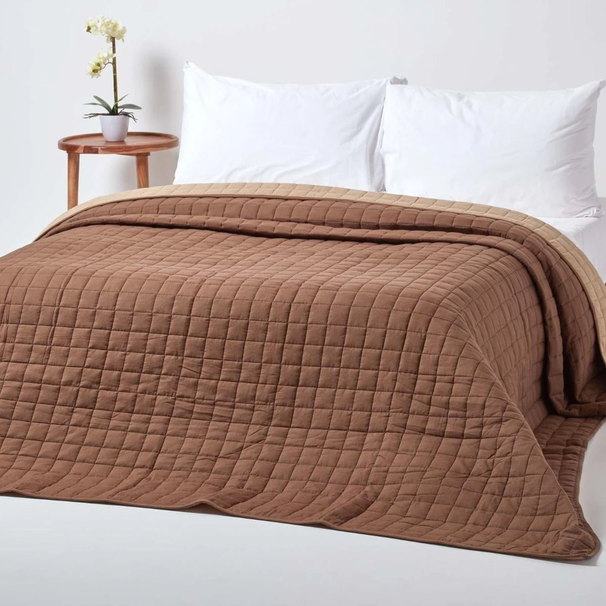 Verschönern Sie Ihr Bett mit Homescapes gesteppter Wendedecke in Braun.