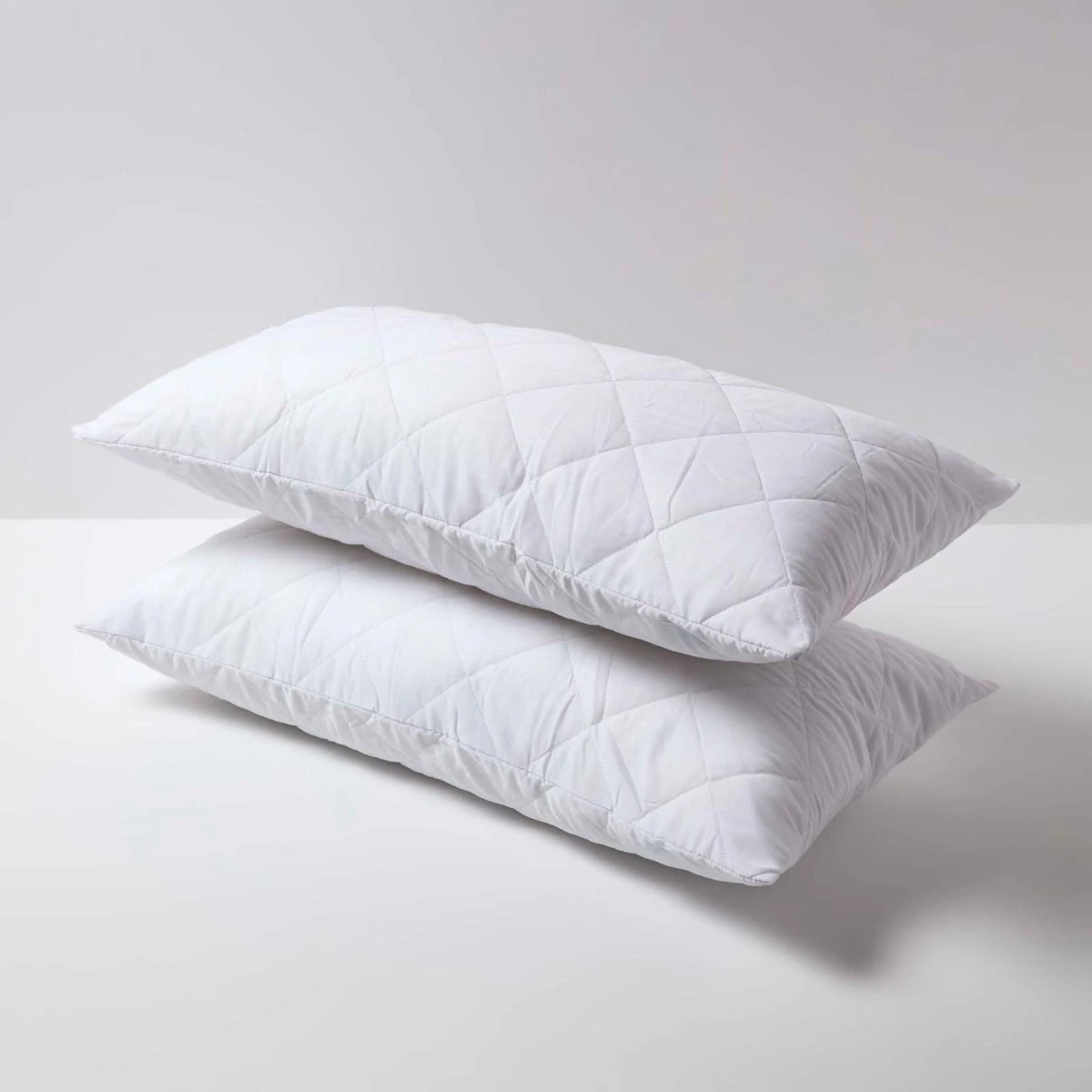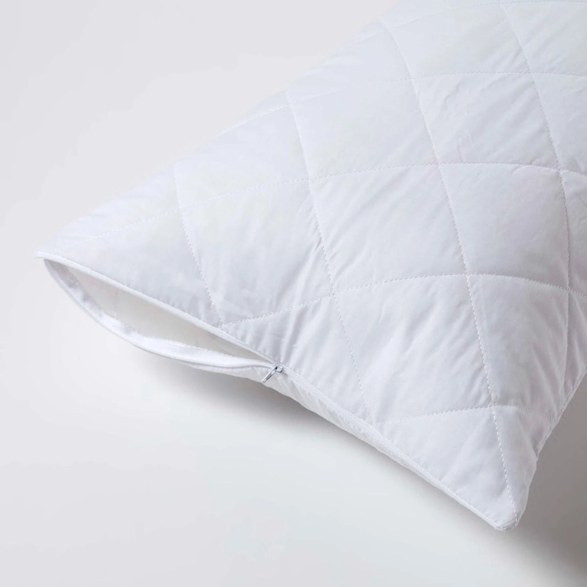 Der gesteppte Kissen-Schonbezug im 2er-Pack misst 50 x 90 cm und schützt Ihre Kissen, sodass sie lange schön bleiben.