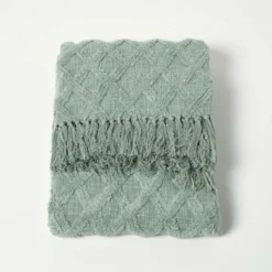 Baumwolldecke Grün 125 X 150 Cm – Wohndecke Tufted, Geometrisch Gemustert