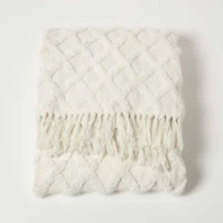 Baumwolldecke Weiß 125 X 150 Cm – Wohndecke Tufted, Geometrisch Gemustert