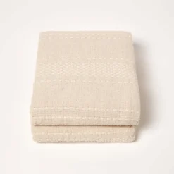 Baumwolldecke Kashi – Wohndecke / Überwurf Creme Mit Fransen