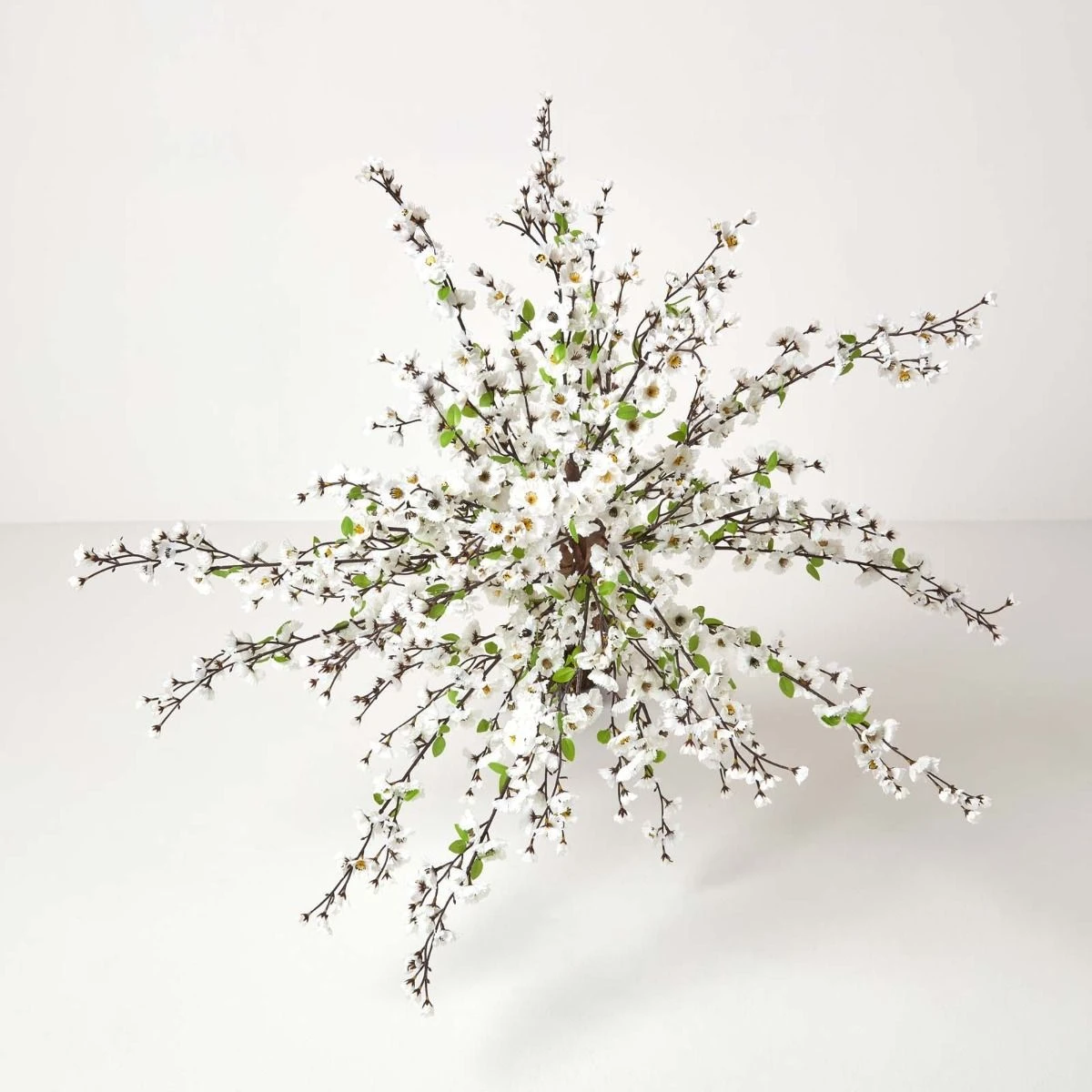 Realistischer, etwa 153 cm großer Kunstbaum mit zarten, grünen Blättern und einer Vielzahl romantischer, weißer Blüten in einem schwarzen Topf. Der zauberhafte Baum ist in jedem Raum ein echter Blickfang.