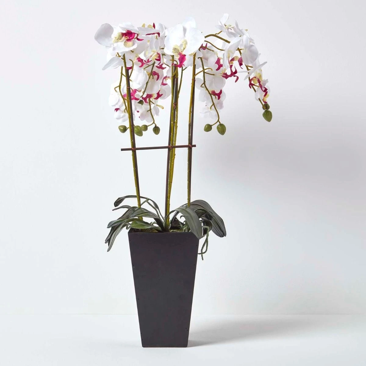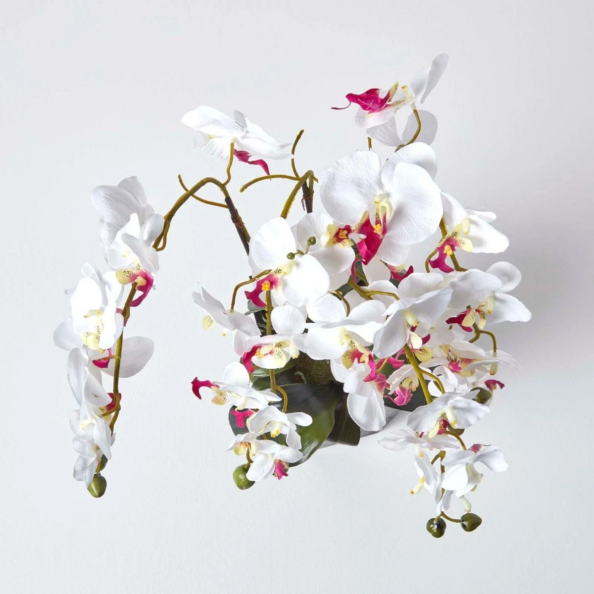 Künstliche Orchideen sind ideal für alle, die keinen grünen Daumen oder keine Zeit für die Pflanzenpflege haben. Sie benötigen weder Wasser noch Dünger und welken und verblühen nie. Zur Pflege genügt gelegentliches Abwischen mit einem weichen Tuch. Und dank der detaillierten Gestaltung wirken Homescapes’ Kunstorchideen wie echt. Mit unseren naturgetreuen Orchideen kreieren Sie in jedem Raum ein freundliches und entspannendes Ambiente.