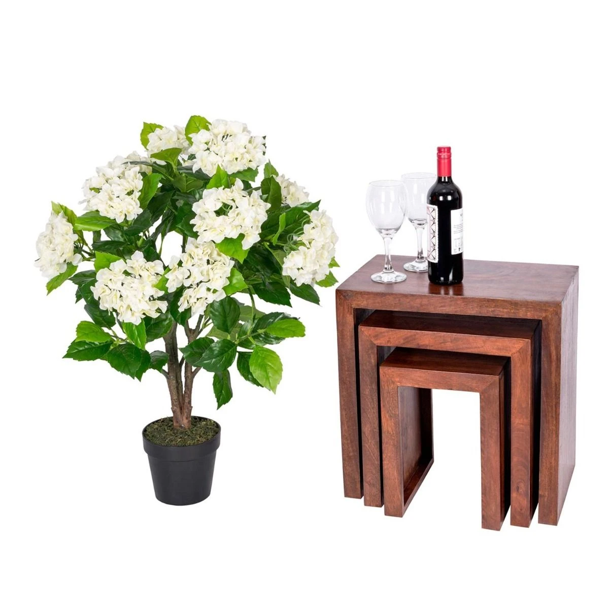 Holen Sie sich ganzjährig ein Stück Sommer ins Haus und schaffen Sie mit diesem prächtigen, etwa 85 cm großen Hortensien-Busch mit cremeweißen Blüten eine wunderbare, florale Atmosphäre.