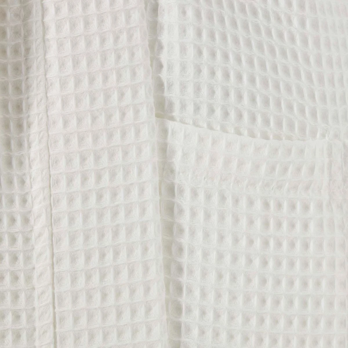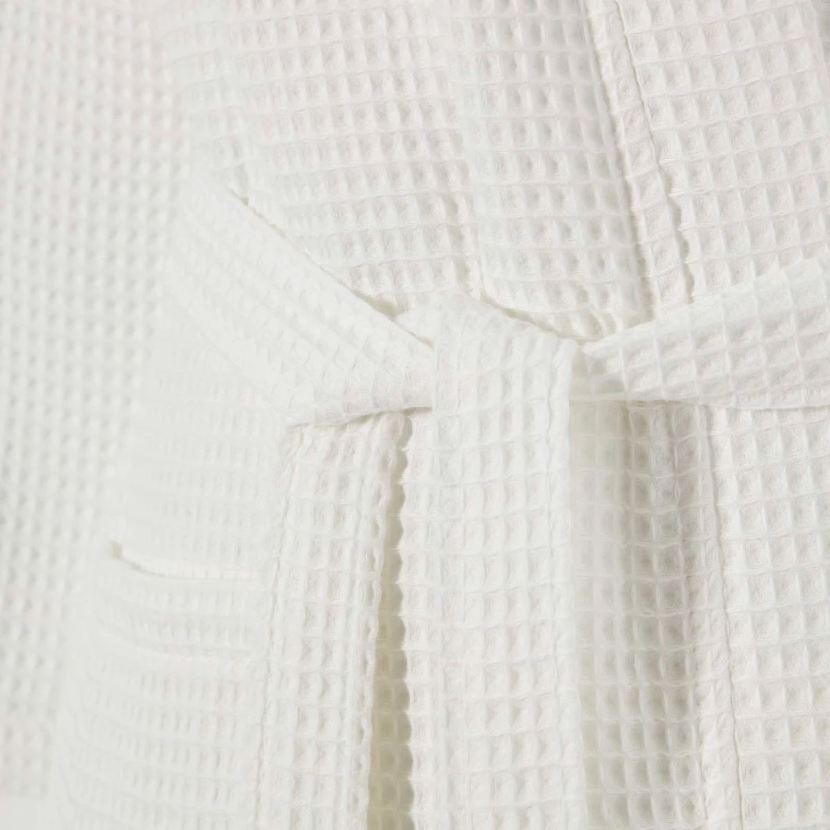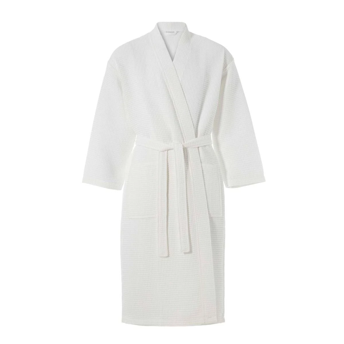 With a shawl collar, two pockets and a matching belt, this kimono style large white waffle bathrobe fits in perfectly with the latest trends. Ideal for people that prefer a lightweight bathrobe, this waffle texture is both stylish and highly absorbent. This soft fabric dries quickly which makes it the ideal material for a bathrobe, and is convenient for long relaxing spa days. This bathrobe is machine washable at 40°C.