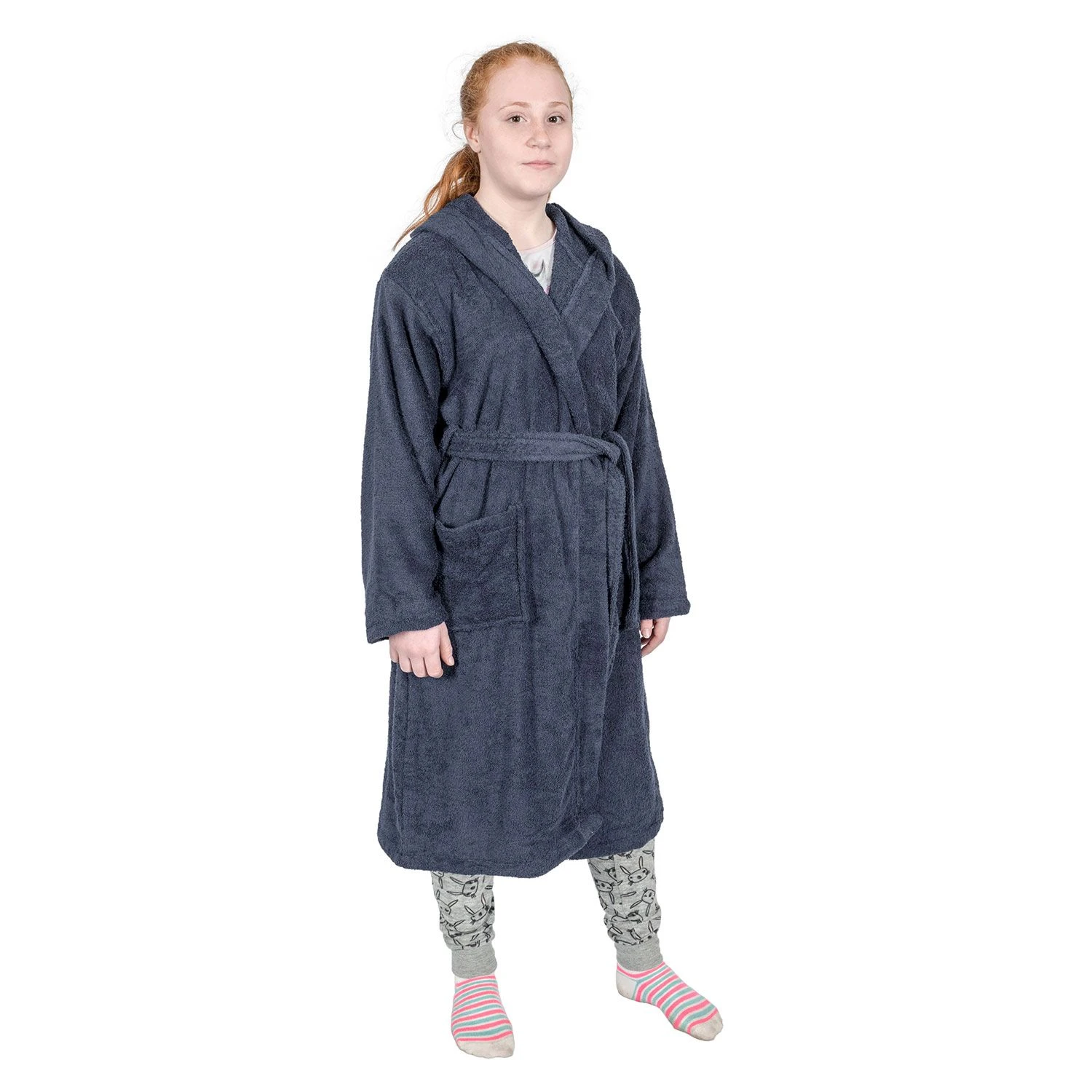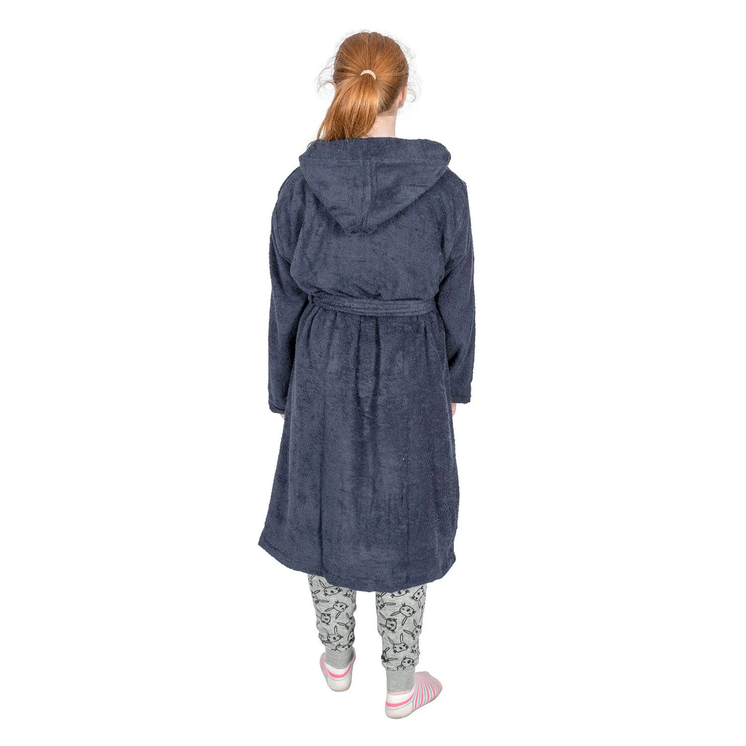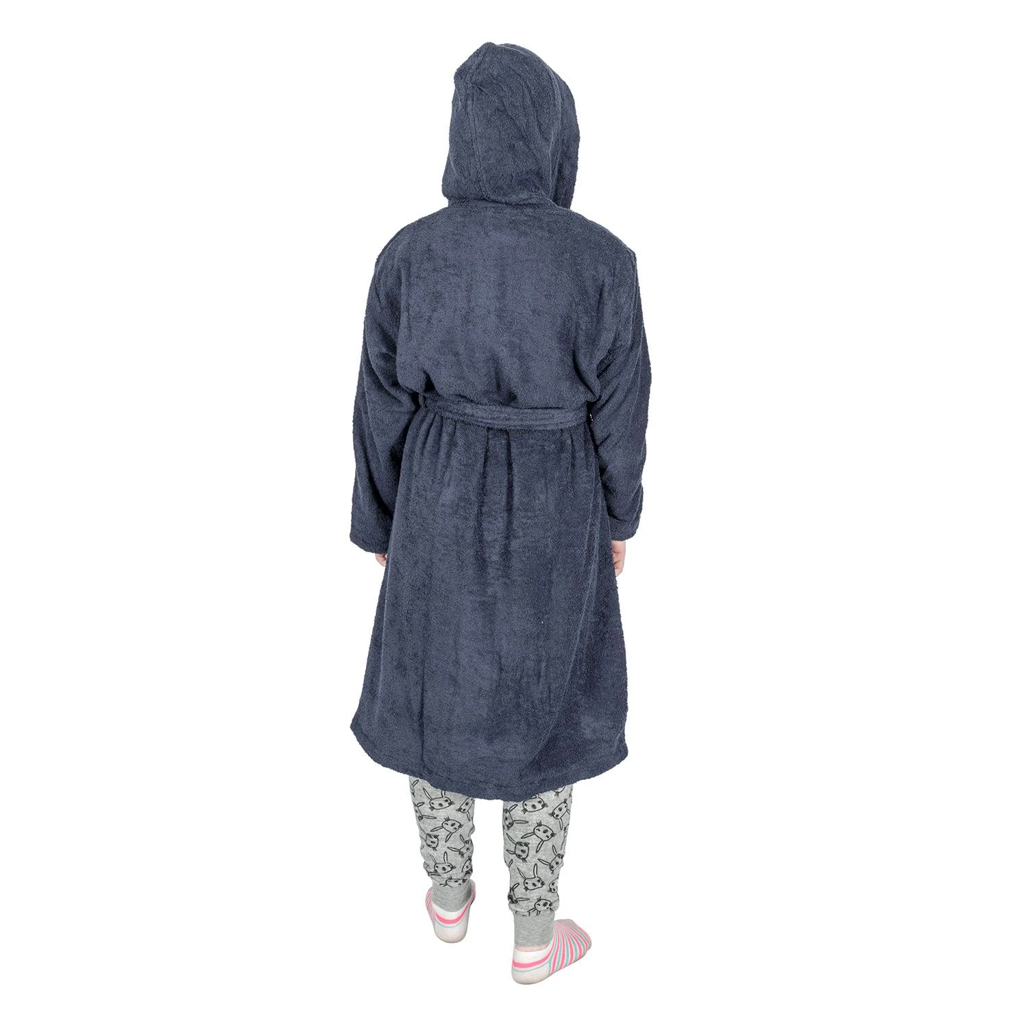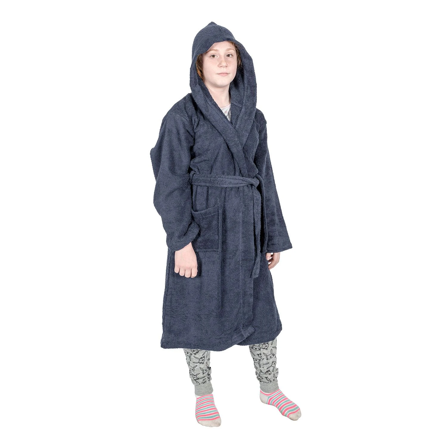 Kuschelig warmer Bademantel für Kinder aus Frotté mit Kapuze und zwei Taschen in Marineblau aus hochwertigem, hautfreundlichem Frotteestoff, Homescapes