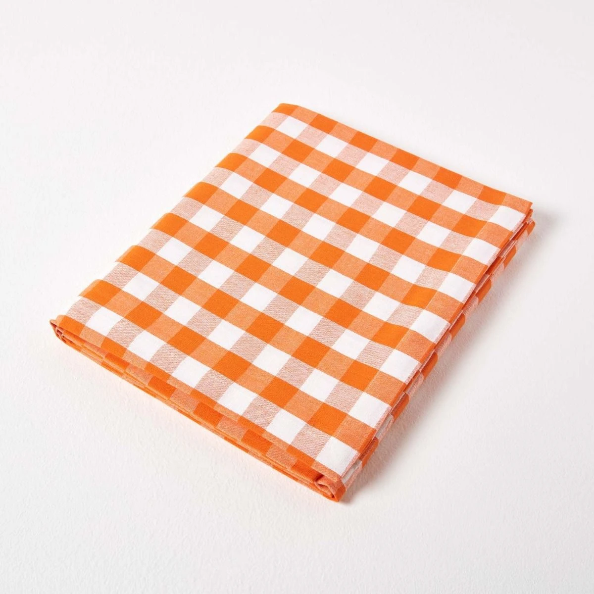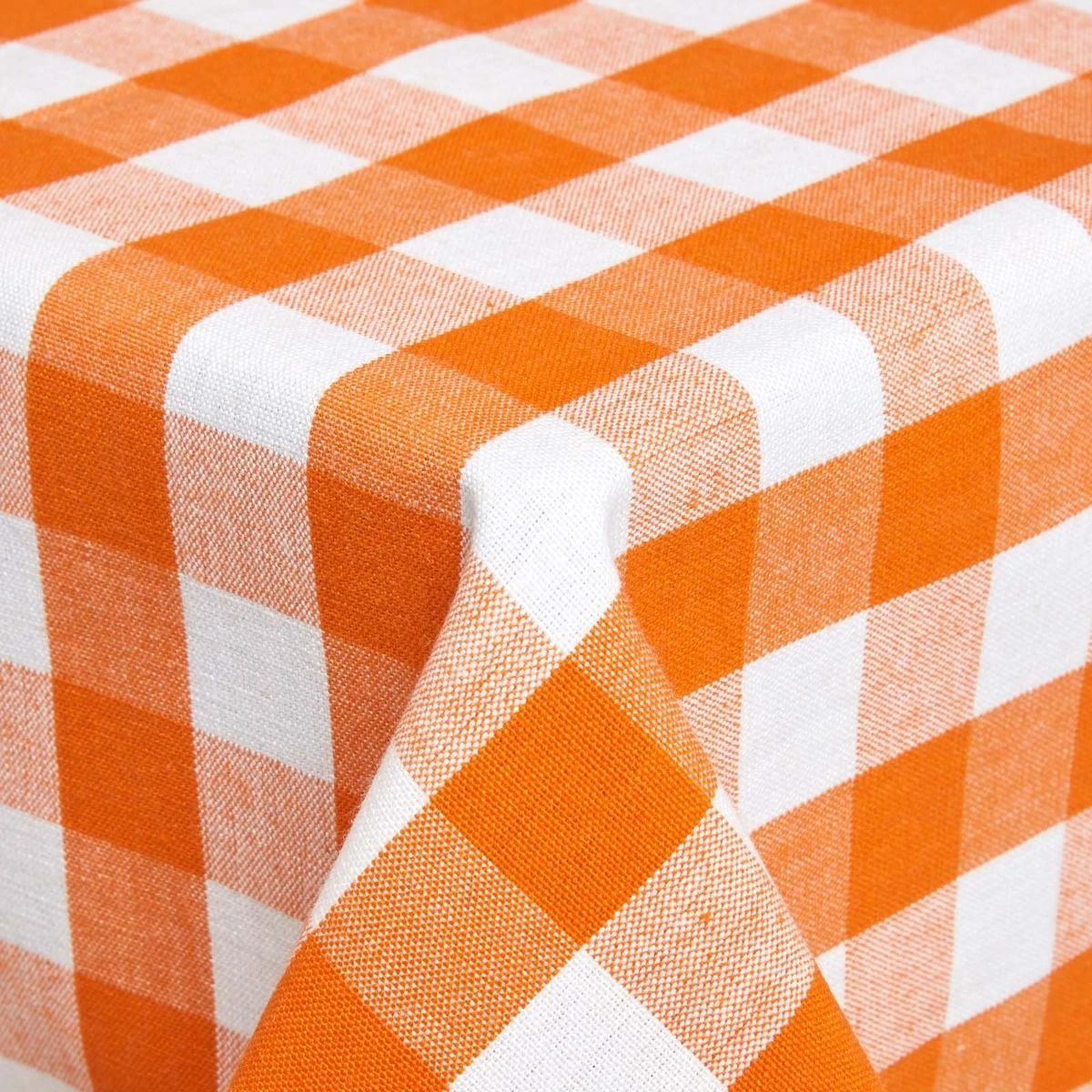 Die Tischdecke mit orangenem Karo-Muster besteht aus 100% Baumwolle und ist hübsche Deko auf jedem Tisch.