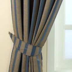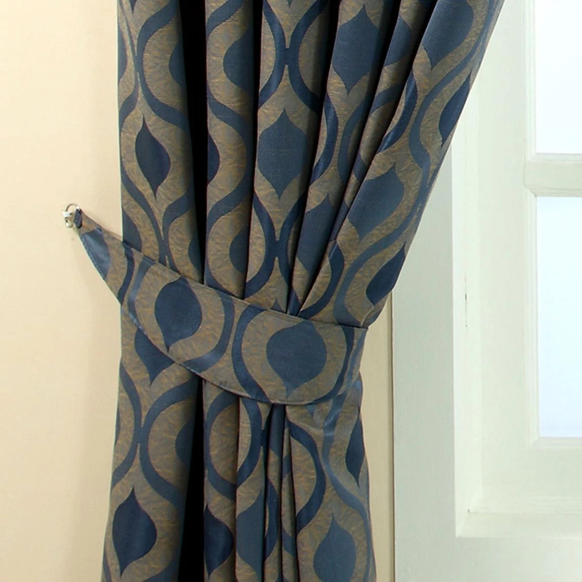 Zwei Vorhanghalter blau mit zeitlosem Wellenmuster von Homesapes. Raffhalter für Vorhänge aus der Vevey Curves Serie. Edler Jacquardstoff, hochwertig verarbeitet