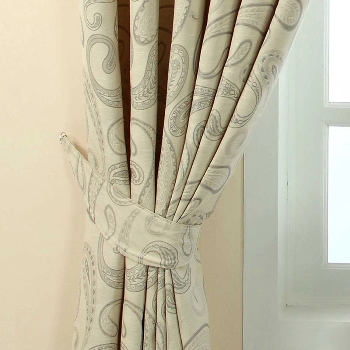 Paisley Muster Raffhalter ergänzend zur Vorhang Serie Vevey Paisley von Homescapes. Vorhanghalter creme im 2er Set aus edlem Jacquardstoff.