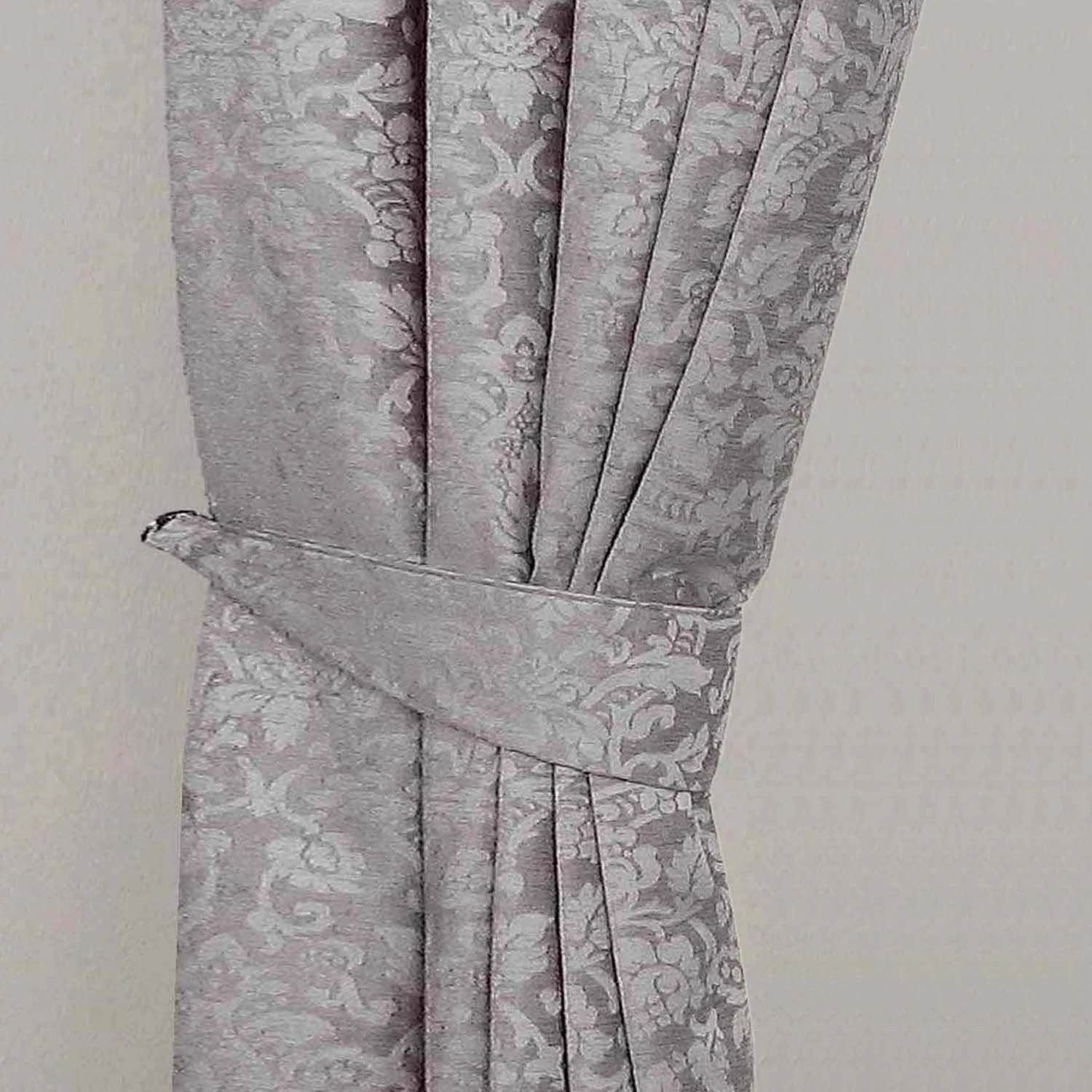 Homescapes Raffhalter für Samt Jacquard Thermovorhang grau. Die brandneue Gardinen Serie „Jacquard“ von Homescapes bietet Ihnen erstklassige Qualität und Funktionalität gepaart mit einem Hauch von Luxus und einer einzigartig großen Auswahl von insgesamt 9 verschiedenen Größen und 3 klassischen Farben. Die sehr edel wirkende Damask Struktur und das traditionelle florale Muster des Vorhangstoffes passen besonders gut in klassische und traditionelle Raumkonzepte. Der dezente Grauton sorgt für einen stilvollen Akzent ohne aufdringlich zu wirken. Zusätzlich erhalten Sie bei uns passende Raffhalter im 2er Set um Ihren Vorhängen den letzten Schliff verleihen zu können. Sie können praktisch jeden Raum ganz nach Ihren Vorstellungen und farblich abgestimmt dekorieren. Oder zeigen Sie Mut zur Farbe und kombinieren Sie die Vorhänge mit Raffhaltern in einer anderen Farbe. Ihrer Phantasie sind keine Grenzen gesetzt!