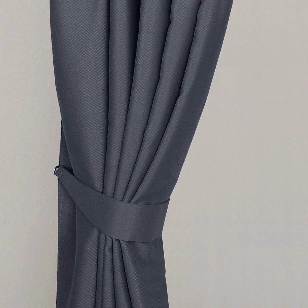 Das einfache und moderne Muster des dunkelgrauen Raffhalters machen ihn zum stilvollen und nützlichen Accessoire zu jedem Kräuselband oder Ösen – Vorhang im selben Fischgrätendesign. Mit dem Raffhalter fälllt der Vorhang ideal und lässt ebenso Licht in jedes Schlaf-, Ess- und Wohnzimmer und verleiht dem Raum eine gemütliche und helle Atmosphäre.