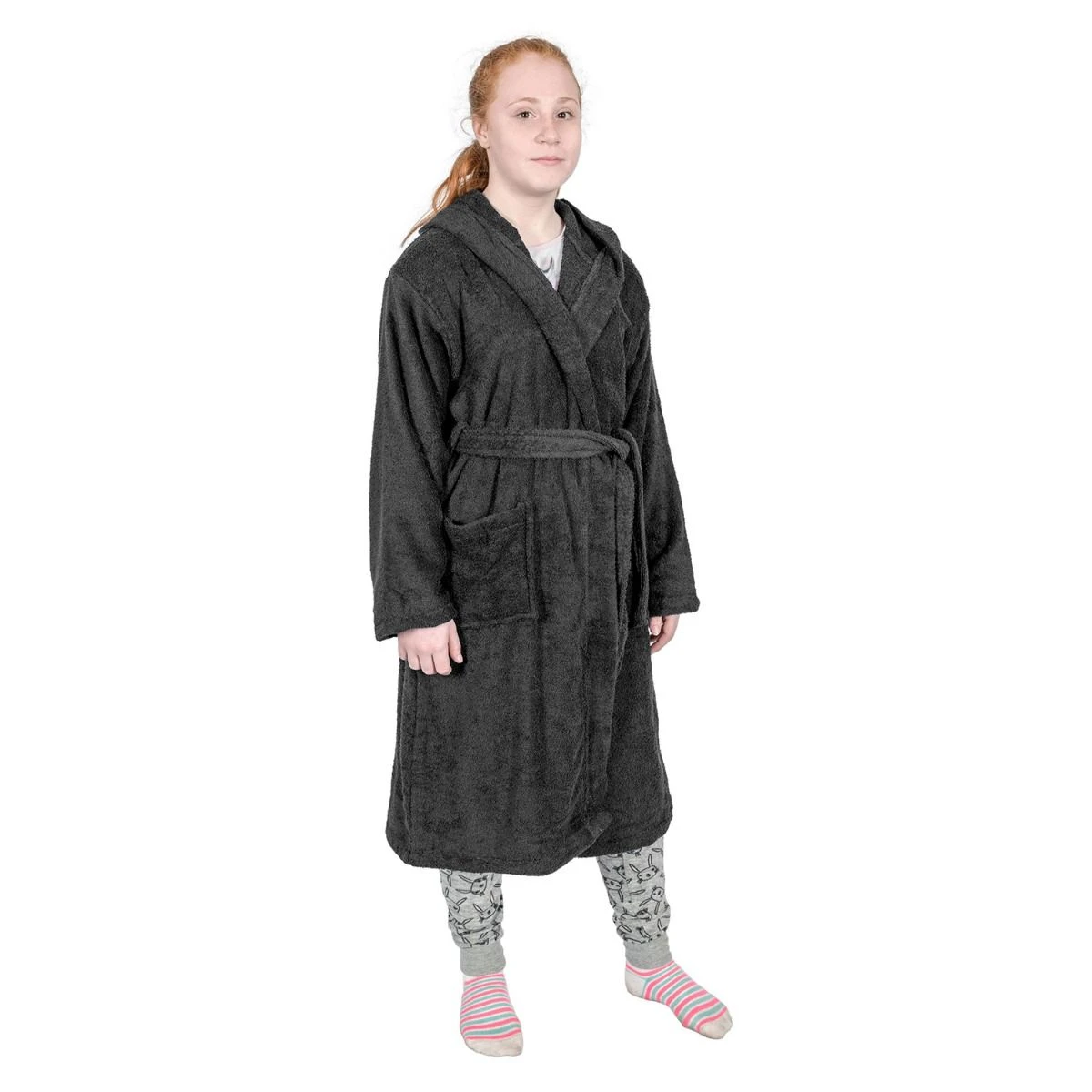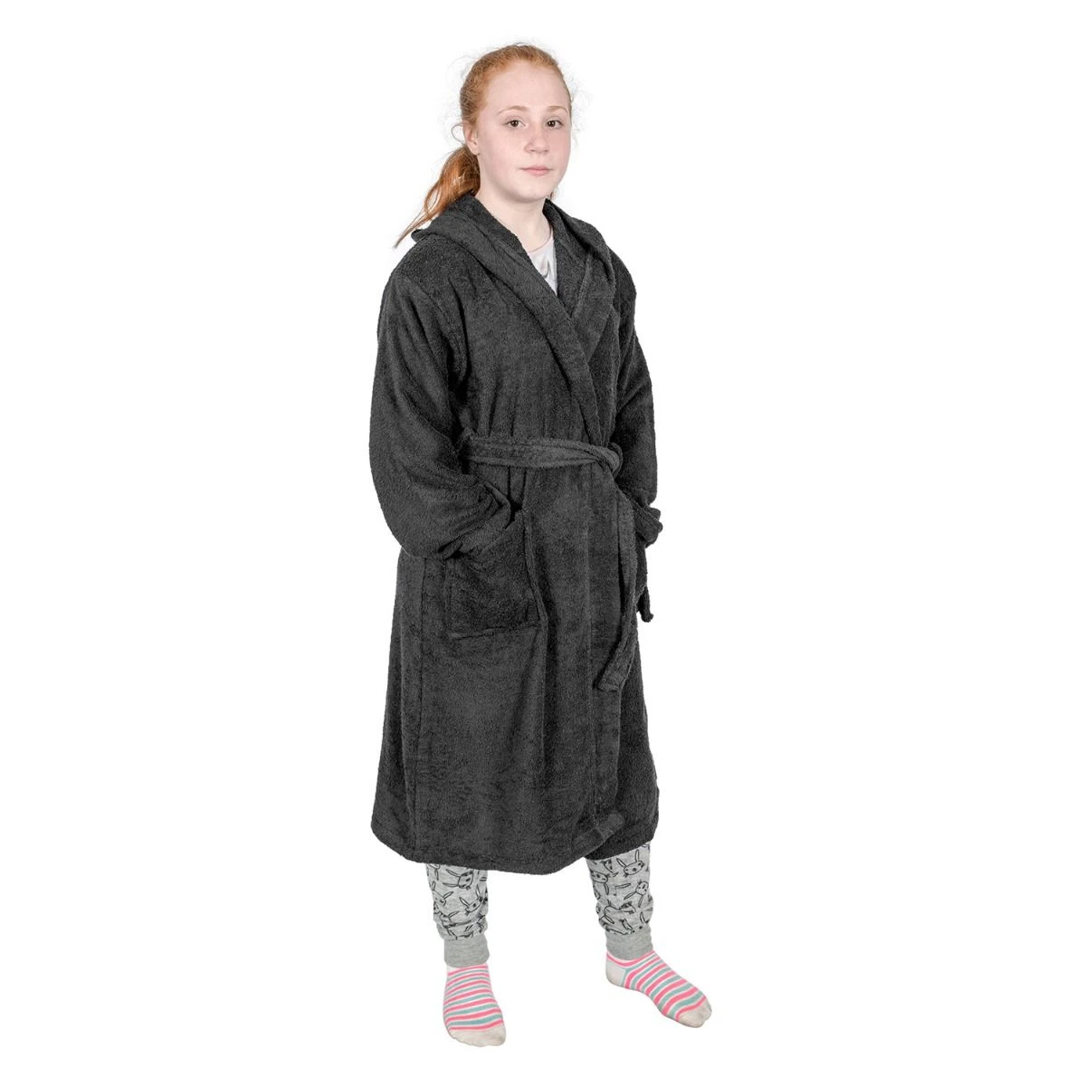 Kuschelig warmer Bademantel für Kinder aus Frotté mit Kapuze und zwei Taschen in Schwarz aus hochwertigem, hautfreundlichem Frotteestoff, Homescapes