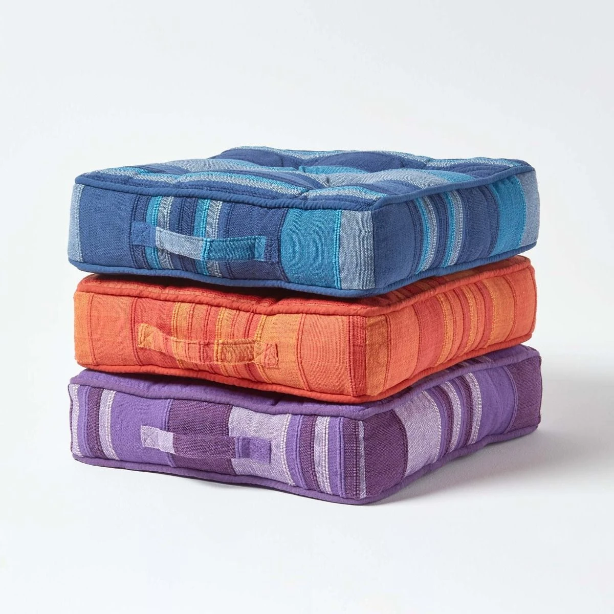 Bringen Sie ein wenig Farbe in Ihr Zuhause mit einem unserer dekorativen Sitzkissen „Morocco“. Vielseitig einsetzbar: als Bodenkissen, Sitzkissen oder Stuhlauflage, als Sitzerhöhung in Kino und Theater oder als dekoratives Kissen für Bänke. Stabiler Halt dank hochwertiger Polyesterfüllung garantiert. Dazu passend: dekorative Tagesdecken und Vorhänge aus der „Rajput“-Serie. Alle Tagesdecken, Vorhänge und Kissen sind außerdem in moderner Streifenoptik aus der „Rajput“-Serie erhältlich. Setzen Sie neue Akzente mit erfrischenden Farben und zeitlosem Design!