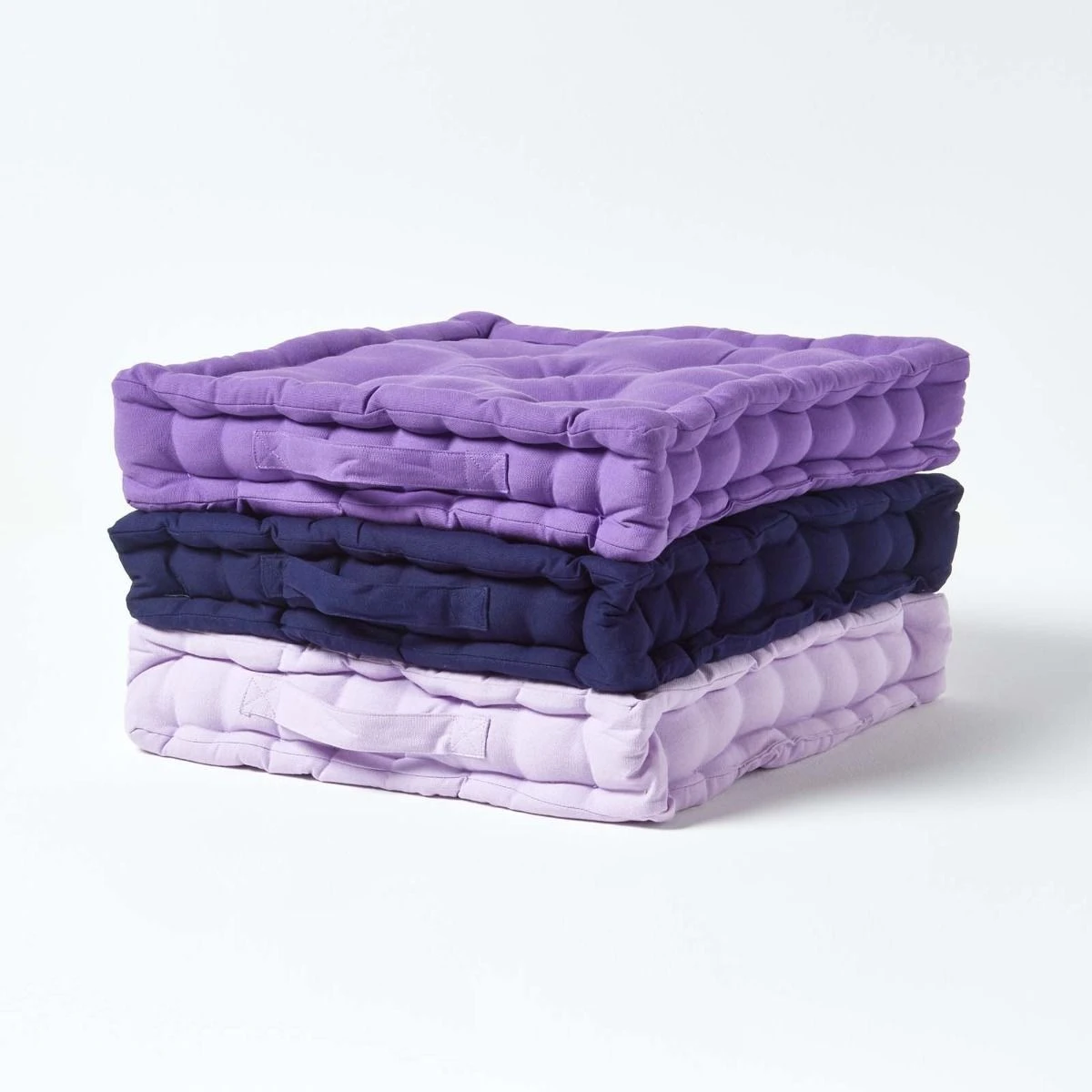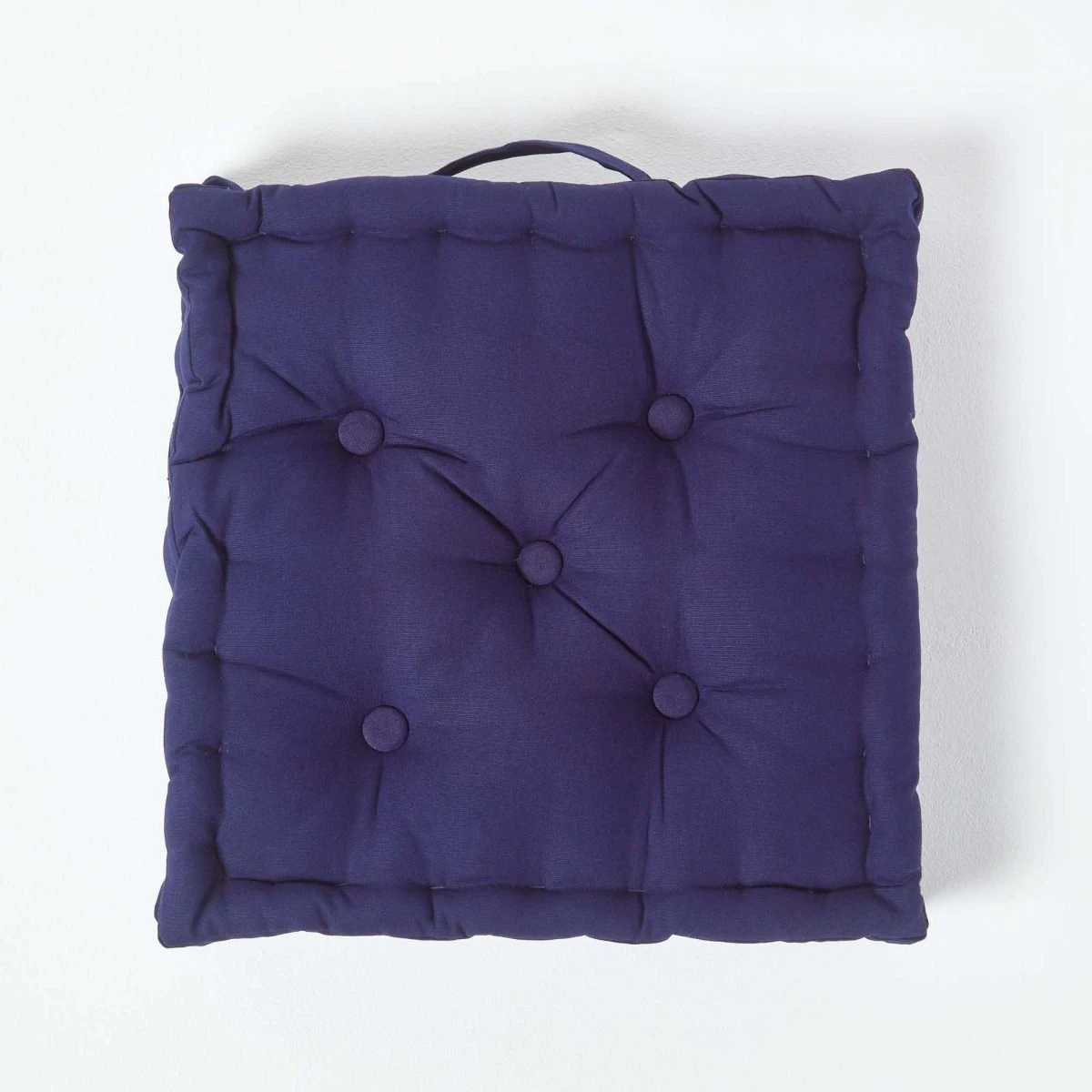 Wunderschöne einfarbige Sitzkissen aus 100% hochwertiger Kaliko Baumwolle – bequem, dekorativ und praktisch. Die hochwertige Polyester-Füllung macht jedes Kissen besonders stabil aber gleichzeitig komforabel und bequem. Vielseitig einsetzbar, ob als Bodenkissen, Stuhlauflage oder Sitzkissen für Bänke und Gartenmöbel. Auch ideal für farbenfrohe Akzente im Kinderzimmer oder als praktische Sitzerhöhung im Kino und Theater geeignet. Durch den praktischen Tragegriff können Sie diese Kasettenkissen außerdem überall hin mitnehmen. Auch in vielen verschiedenen Print-Designs und mit Streifen- und Karomustern erhältlich. Passend dazu bieten wir dekorative Ösenvorhänge und Dekokissen in 5 verschiedenen Größen an. So können Sie Ihr Zuhause ganz nach Ihren Vorstellungen und farblich aufeinander abgestimmt dekorieren!