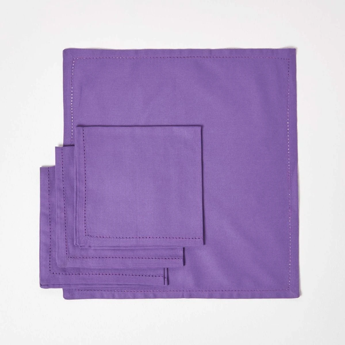 Lila Stoffservietten von Homescapes werten jeden Tisch im Handumdrehen auf.