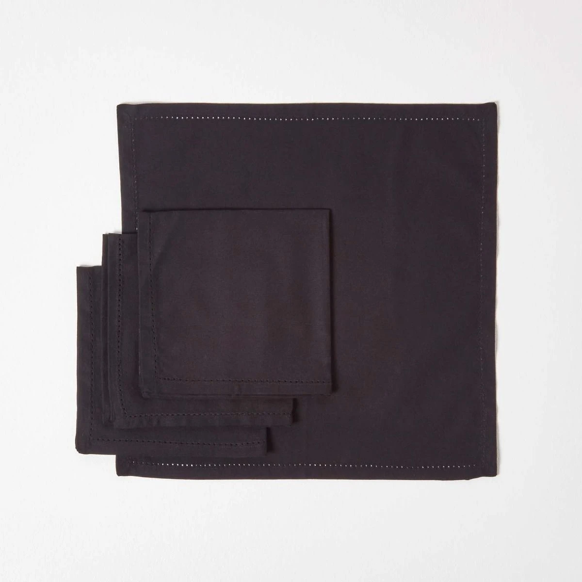 Setzen Sie mit unseren schwarzen Baumwoll-Servietten raffinierte Statements auf Ihrem Tisch. Die Servietten sind bei 40 Grad waschbar. Auch weitere Farben wie Creme und Braun sind verfügbar. Im Set enthalte sind 4 Servietten.