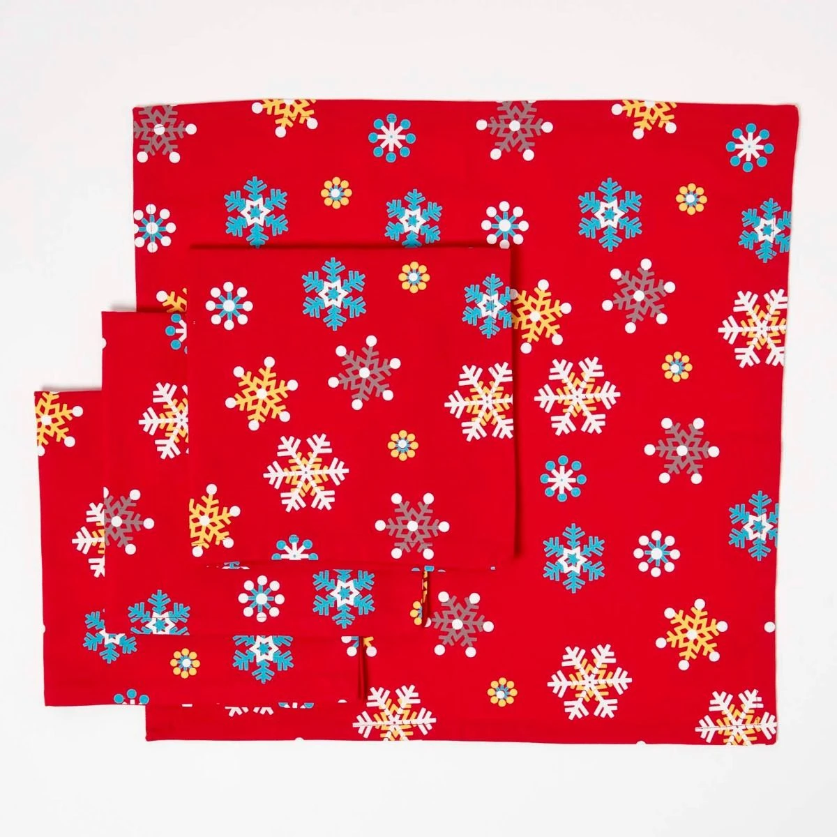 Stoffservietten Rot Schneeflocken Set 4 Tlg 100% Baumwolle