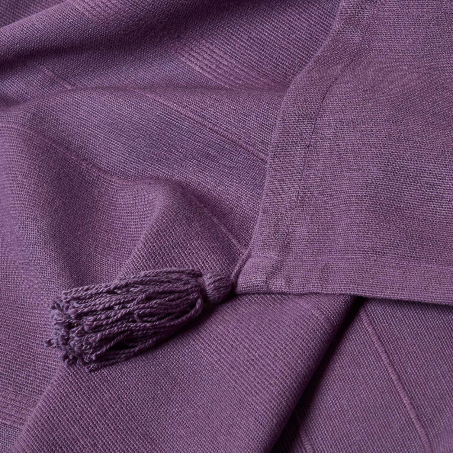 Den Überwurf im attraktiven Lila-Ton gibt es in 3 Größen. Nutzen Sie Ihn tagsüber auf dem Bett oder als dekorative Kuscheldecke auf der Couch. Die hochwertige Tagesdecke besteht aus 100% Baumwolle und macht sich überall gut.