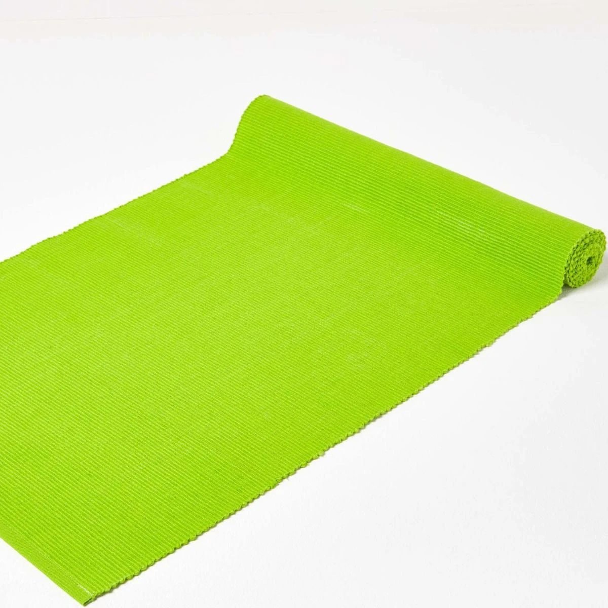 Mit dem limettengrünen Tischläufer von Homescapes dekorieren Sie effektiv und schnell jeden Tisch.