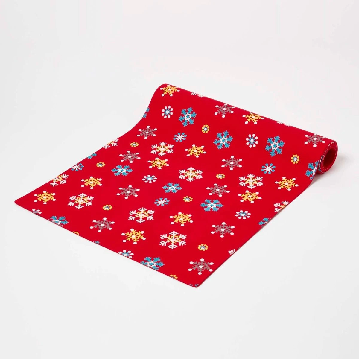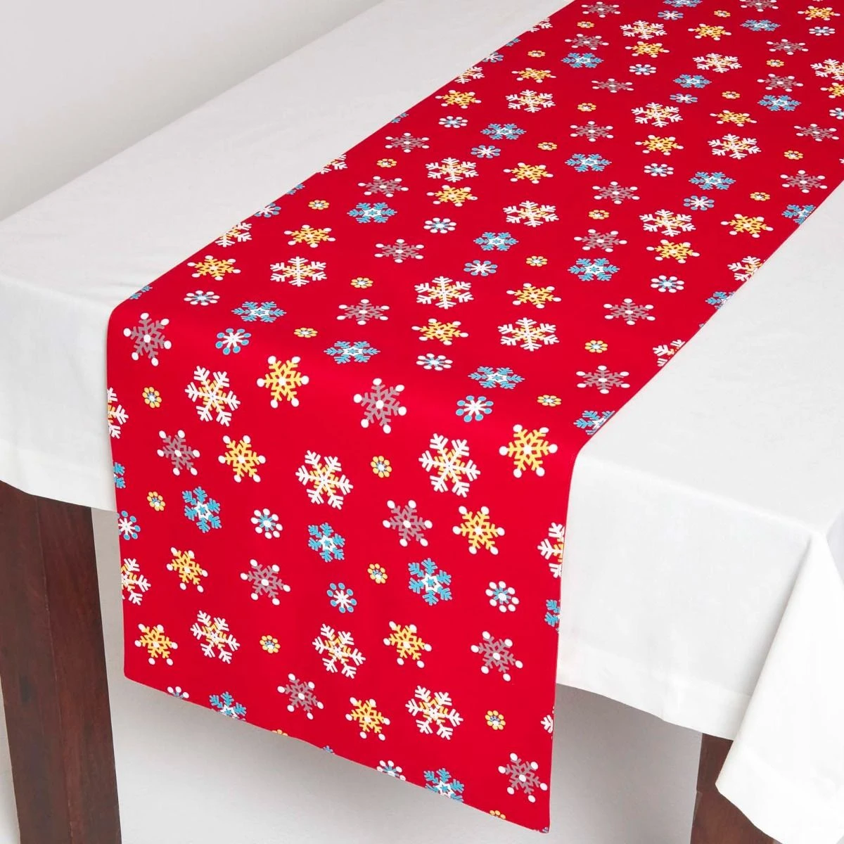 Tischläufer Rote Schneeflocken 100% Baumwolle