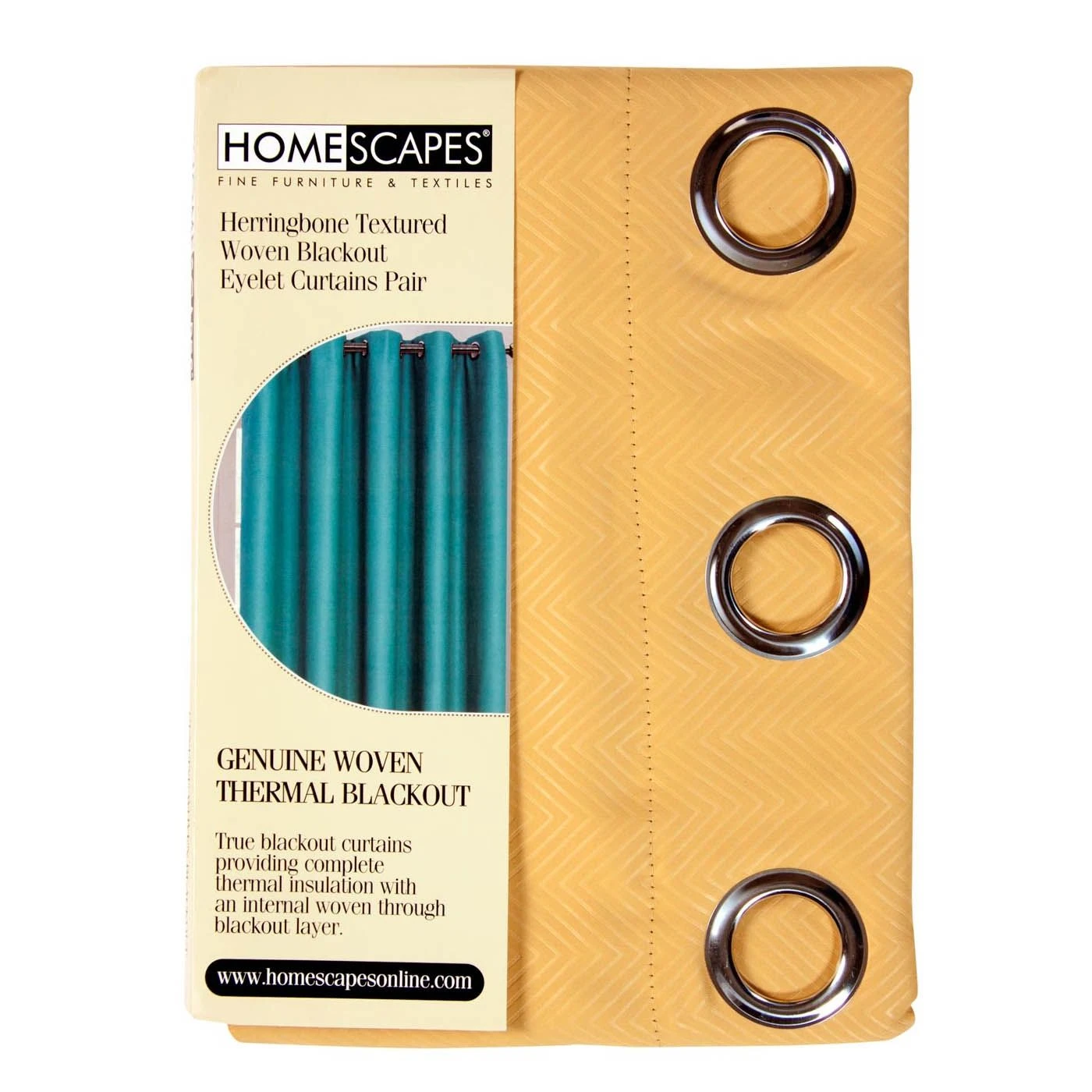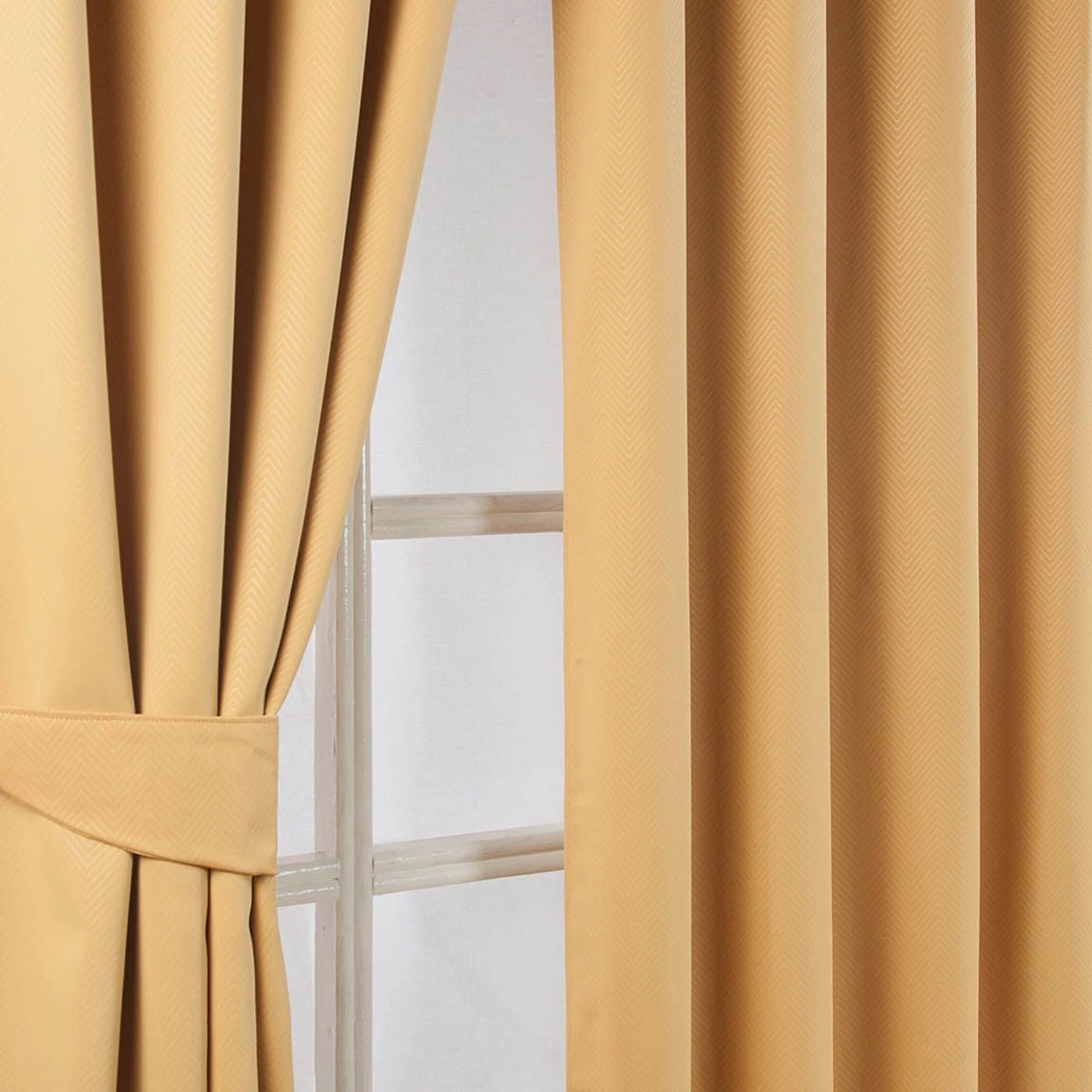 Homescapes fertig konfektionierter Verdunklungsvorhang mit Kräuselband Herringbone senfgelb – Innovation trifft Design! Die brandneue Gardinen Serie „Herringbone“ von Homescapes bietet Ihnen erstklassige Qualität und Funktionalität gepaart mit stylishem Retro Design und einer einzigartig großen Auswahl von insgesamt 9 verschiedenen Größen und 7 angesagten Farben. Homescapes‘ Verdunkelungsvorhänge sind mit Ösen oder Kräuselband erhältlich. Das schlichte Fischgräten-Design passt besonders gut in moderne oder Retro inspirierte Raumkonzepte. Zusätzlich erhalten Sie bei uns passende Kissenbezüge und Raffhalter um Ihrem Schlafzimmer oder Wohnzimmer den letzten Schliff zu verleihen. Oder peppen Sie ein Kinderzimmer oder Jugendzimmer damit auf. Sie können praktisch jeden Raum ganz nach Ihren Vorstellungen und farblich abgestimmt dekorieren. Der eingewobene Verdunklungsstoff sorgt dafür, dass die Vorhänge absolut blickdicht und lichtabweisend sind und darüber hinaus Lärm und Zugluft mindern können. So kann einer der Schals oder sogar beide Vorhänge auch als Türvorhang verwendet werden