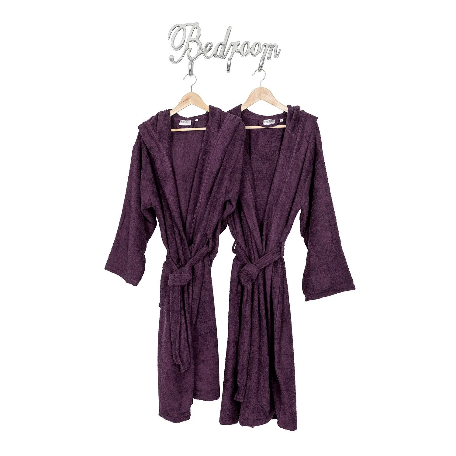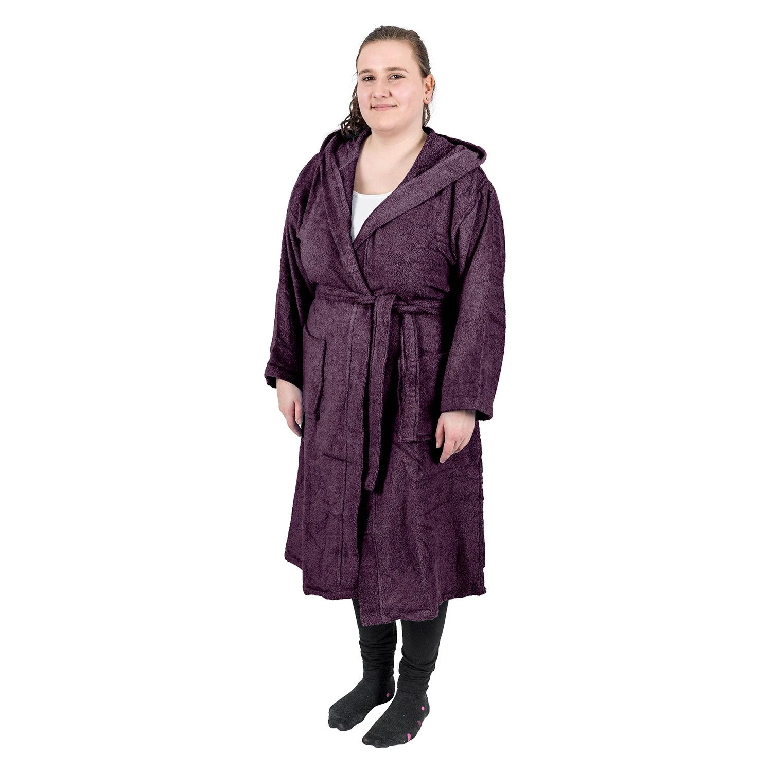 Alltäglicher, kuscheliger Bademantel für Erwachsene mit Kapuze und Taschen in Violett aus hochwertigem, hautfreundlichem Frotteestoff, Homescapes