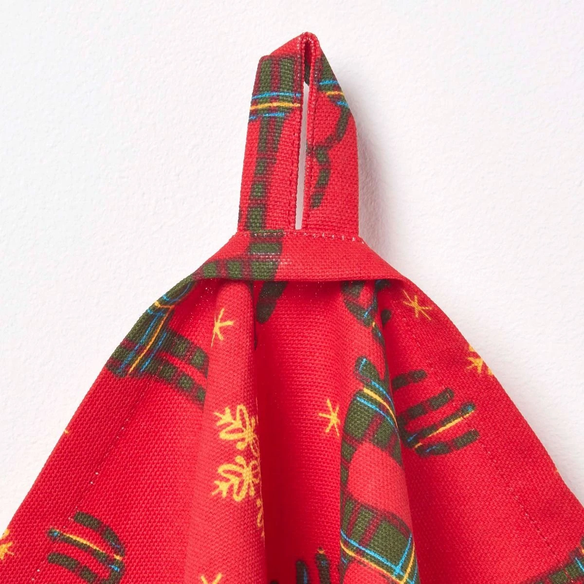 Bunte Weihnachts-Geschirrtücher im 3er-Set in Rot und Dunkelgrün – aus 100% Baumwolle mit traditionellen Rentier Design, superweich und saugfähig.