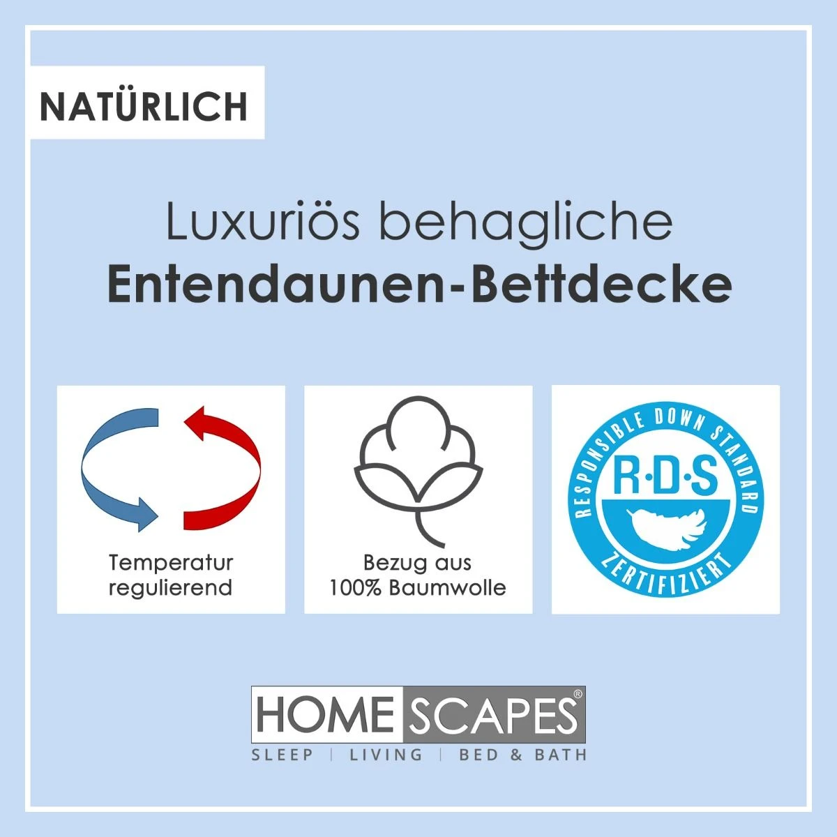 Alle unsere Daunendecken sind Responsible Down Standards (RDS)-zertifiziert, wodurch die Herstellungsschritte hohen ethischen Standards genügen und nachvollziehbar sind und die verwendete natürliche Füllung nie aus Lebendrupf stammt. Der Bezug der Schlafdecke ist aus 100% Baumwolle mit Fadendichte 300 gewebt. Dank der hohen Fadendichte können sich keine Hausstaubmilben und weitere Allergene in der Decke absetzen, wodurch diese Decke auf für Allergiker geeignet ist. Durch die dichte Webart und die Verwendung von Naturfasern ist der Stoff temperaturausgleichend, atmungsaktiv und hautfreundlich. Wir bieten auf unsere Daunendecken eine Herstellergarantie von zehn Jahren.
